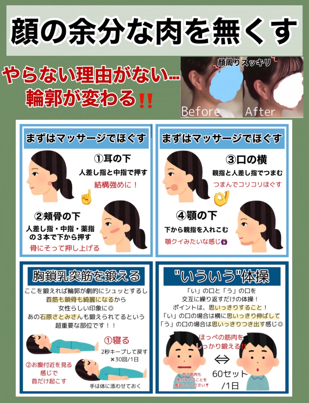 私が全力でオススメしたい、 顎下のお肉を落として、顔をシュッとさせる超簡単な筋トレをご紹介します!!! 用意する物もなく、何かしながらでも出来る筋トレです🙆🏻👌✨ 毎日継続すると、1週間以内に効果が出ると思います!! (見た目に出るのはもう少し時間がかかりますが、触るとスッキリしたのがほんっっに分かる!!!) 筋トレ❶ 筋トレ❷ すっごく効果があるので、皆さんもぜひ試してみてください!!