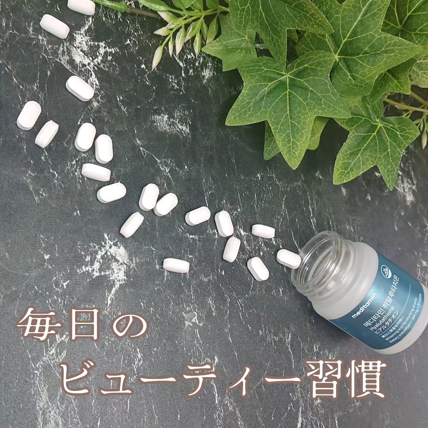 🩵メディタミンの、ヒアルタチオンこちら、定期的に飲んでる。こちらは、8つの美容成分たっぷり含有!■成分ヒアルロン酸、グルタチオン、NMN。その他にもLーシスチン、エラスチン、コラーゲン、ミルクセラミド、ドクダミエキス粉末まで配合。1日1粒飲ん...