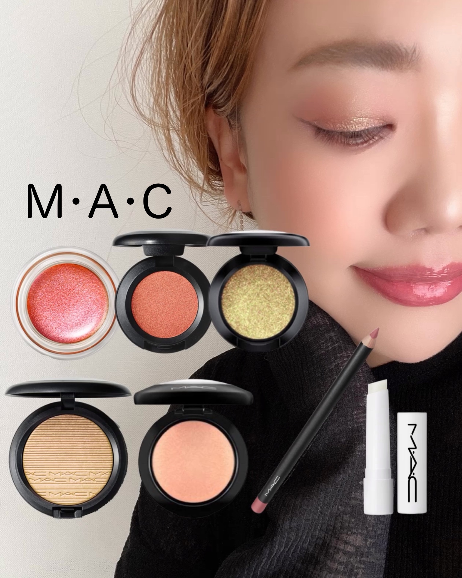 深い赤みブラウン×ゴールドのアイメイクに、赤×ゴールドラメのホリデーリップ、似たトーンのチーク&ハイライトパレットを使って リップにパレットのラメを重ねたら立体感増し増しでめちゃくちゃ可愛いリップに😍💕 (7枚目)だからMAC大好きなのよ❤️笑 チーク&ハイライトのパレットと、シェーディングが日本未入荷アイテムなのですが、バイマなどでお取り寄せ可能です🙆🏼♀️