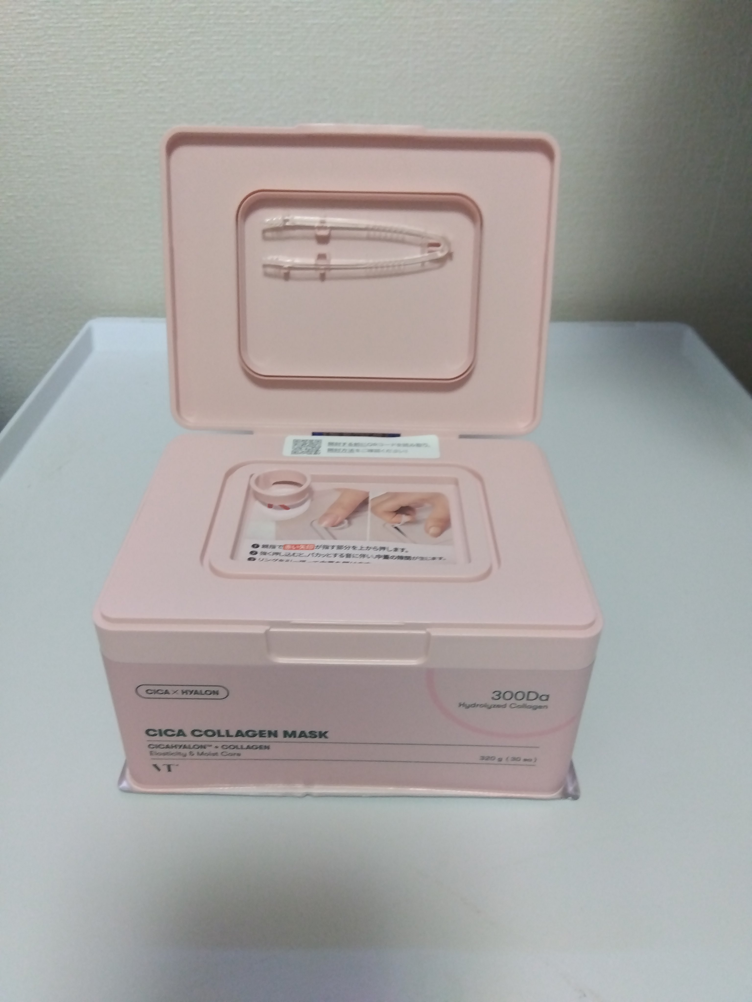 ピンクのパッケージが可愛い❤️ それだけでテンションあがる⤴️ CICAとコラーゲンが配合されてるマスク! 保湿力満点で今の季節にぴったり! パック自体はとても薄くて、肌に浸透しやすく、 空気入れないように貼り付けたら私つけてませんけど?みたいな仕上がりにできそうなくらいぴたっと密着!