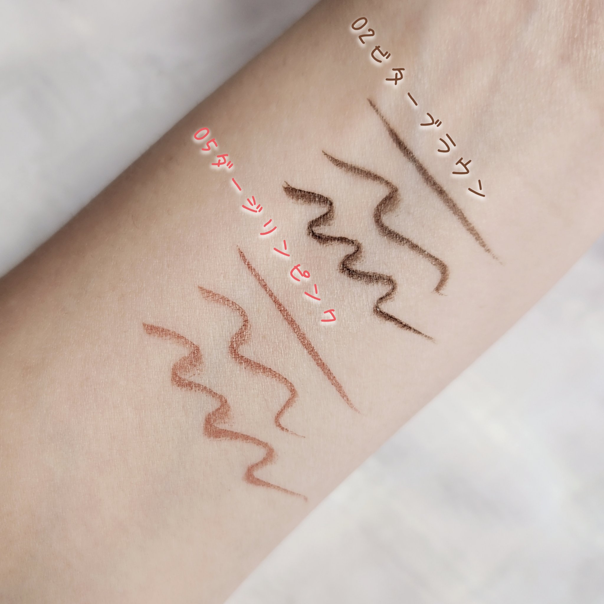 - <01 メロウブラック> 水、(アクリル酸エチルヘキシル/メタクリル酸メチル)コポリマー、BG、(スチレン/アクリレーツ)コポリマー、(アクリレーツ/メチルスチレン/スチレン)コポリマーアンモニウム、1,2-ヘキサンジオール、ヒアルロン酸Na、カミツレ花エキス、サトザクラ花エキス、センチフォリアバラ花エキス、チャ葉エキス、センブリエキス、オリゴペプチド-41、アスコルビン酸、エチルヘキシルグリセリン、ラウリル硫酸Na、リンゴ酸、メチルパラベン、エチルパラベン、フェノキシエタノール、カーボンブラック <02 ビターブラウン> 水、(アクリル酸エチルヘキシル/メタクリル酸メチル)コポリマー、BG、(アクリレーツ/メチルスチレン/スチレン)コポリマーアンモニウム、ヒアルロン酸Na、カミツレ花エキス、サトザクラ花エキス、センチフォリアバラ花エキス、チャ葉エキス、センブリエキス、オリゴペプチド-41、アスコルビン酸、ポリアスパラギン酸Na、エチルヘキシルグリセリン、セテス-20、クエン酸、リンゴ酸、EDTA-2Na、メチルパラベン、エチルパラベン、フェノキシエタノール、酸化鉄、水酸化Al <03 マロンブラウン> 水、(アクリル酸エチルヘキシル/メタクリル酸メチル)コポリマー、BG、(アクリレーツ/メチルスチレン/スチレン)コポリマーアンモニウム、ヒアルロン酸Na、カミツレ花エキス、サトザクラ花エキス、センチフォリアバラ花エキス、チャ葉エキス、センブリエキス、オリゴペプチド-41、アスコルビン酸、ポリアスパラギン酸Na、エチルヘキシルグリセリン、セテス-20、クエン酸、リンゴ酸、EDTA-2Na、メチルパラベン、エチルパラベン、フェノキシエタノール、酸化鉄、水酸化Al <04 ブラウニッシュオレンジ> 水、(アクリル酸エチルヘキシル/メタクリル酸メチル)コポリマー、BG、(アクリレーツ/メチルスチレン/スチレン)コポリマーアンモニウム、ヒアルロン酸Na、カミツレ花エキス、サトザクラ花エキス、センチフォリアバラ花エキス、チャ葉エキス、センブリエキス、オリゴペプチド-41、ポリアスパラギン酸Na、アスコルビン酸、エチルヘキシルグリセリン、セテス-20、リンゴ酸、EDTA-2Na、メチルパラベン、エチルパラベン、フェノキシエタノール、酸化鉄、水酸化Al <05 ダージリンピンク> 水、(アクリル酸エチルヘキシル/メタクリル酸メチル)コポリマー、BG、(アクリレーツ/メチルスチレン/スチレン)コポリマーアンモニウム、1,2-ヘキサンジオール、ポリアスパラギン酸Na、ヒアルロン酸Na、カミツレ花エキス、サトザクラ花エキス、センチフォリアバラ花エキス、チャ葉エキス、センブリエキス、オリゴペプチド-41、アスコルビン酸、エチルヘキシルグリセリン、セテス-20、べヘネス-30、リンゴ酸、AMP、EDTA-2Na、デヒドロ酢酸Na、メチルパラベン、エチルパラベン、フェノキシエタノール、酸化チタン、酸化鉄、赤226、カーボンブラック、水酸化Al <06 シナモンベージュ> 水、(アクリル酸エチルヘキシル/メタクリル酸メチル)コポリマー、BG、(アクリレーツ/メチルスチレン/スチレン)コポリマーアンモニウム、1,2-ヘキサンジオール、ポリアスパラギン酸Na、ヒアルロン酸Na、カミツレ花エキス、サトザクラ花エキス、センチフォリアバラ花エキス、チャ葉エキス、センブリエキス、オリゴペプチド-41、アスコルビン酸、エチルヘキシルグリセリン、セテス-20、べヘネス-30、リンゴ酸、AMP、EDTA-2Na、デヒドロ酢酸Na、メチルパラベン、エチルパラベン、フェノキシエタノール、酸化チタン、酸化鉄、赤226、カーボンブラック、水酸化Al