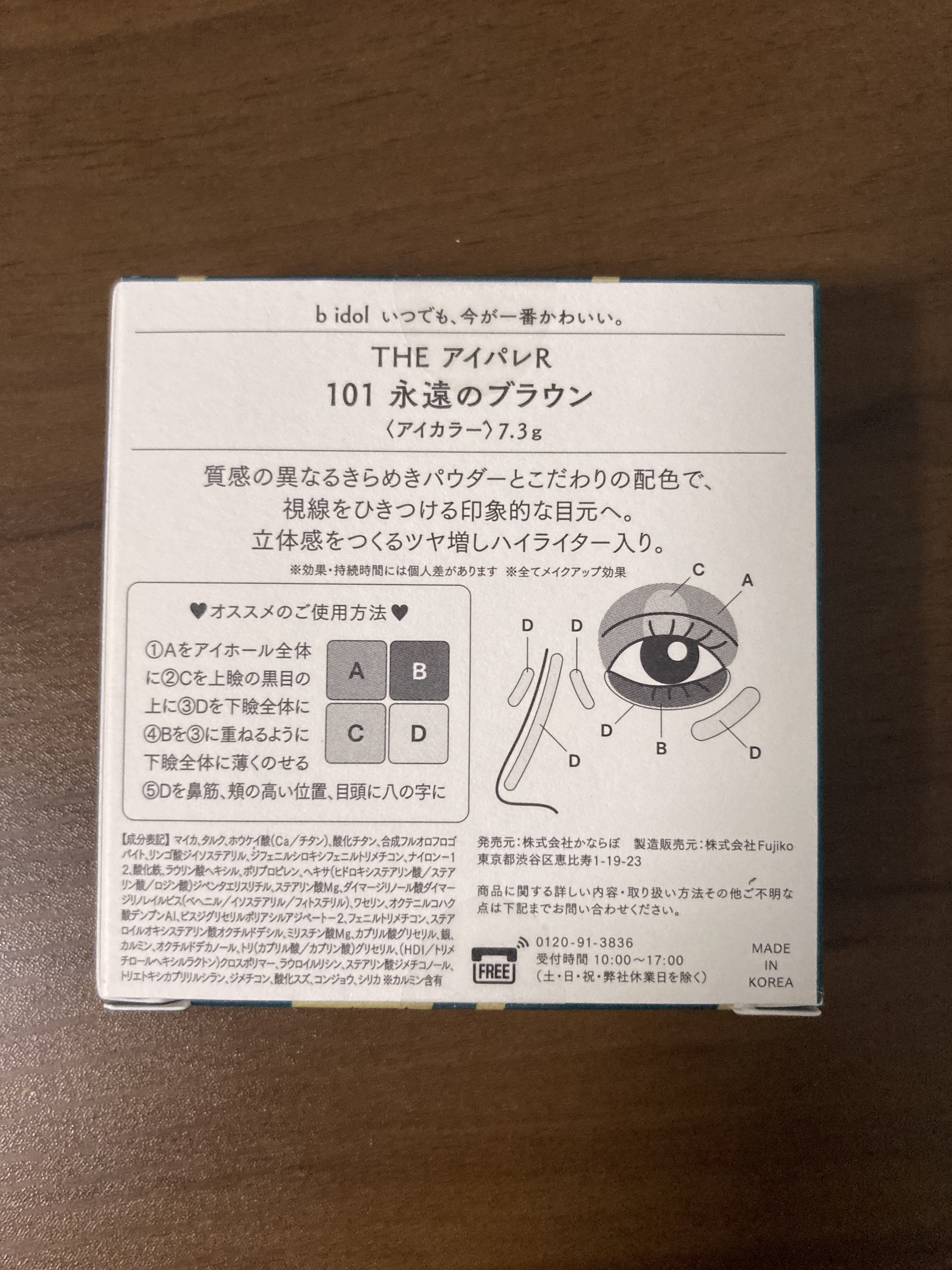 bidol THEアイパレR101永遠のブラウン ¥1,980まだ在庫があると聞いて買ってみました!※2025/4/20時点 まだ売ってました左上:ゴールドパール入り 明るめブラウン右上:マット 黄み少なめブラウン左下:グリッター 色は乗らず...