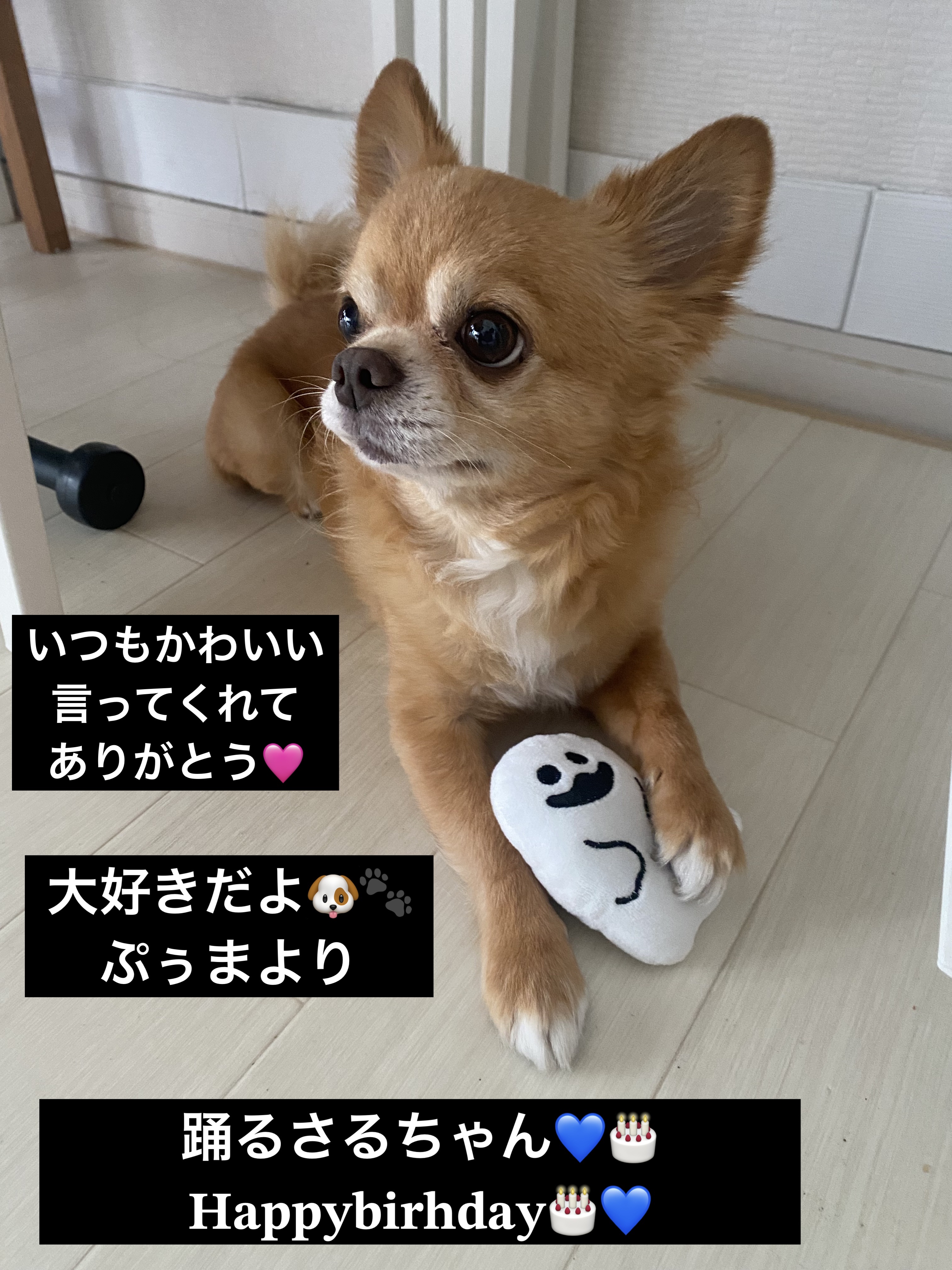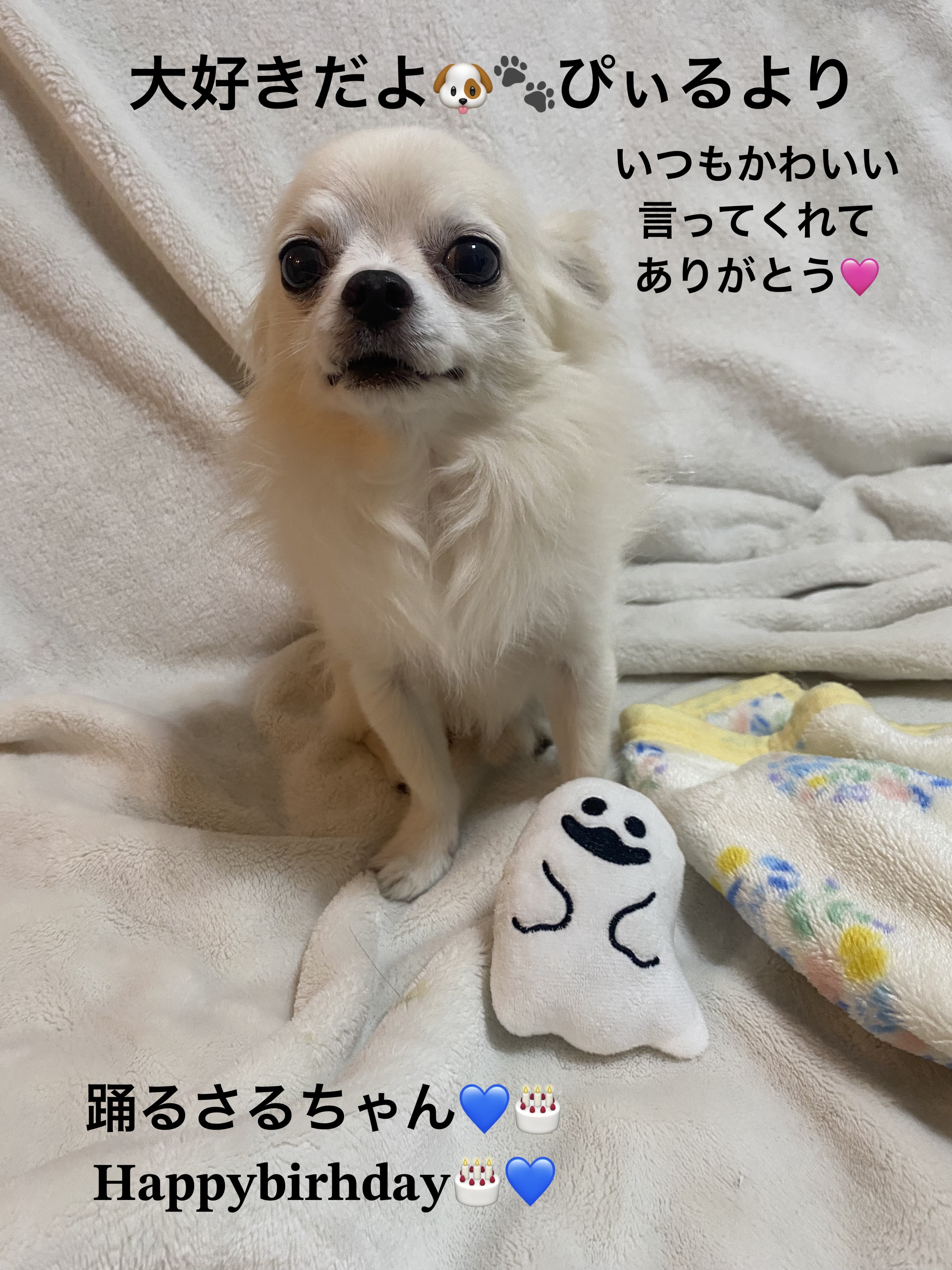 踊るさるさん お誕生日おめでとうございます🎉 素敵なお誕生日をお過ごしください🍀*゜ 元気がでるカラーだね🥰💕 おいしそー🤤