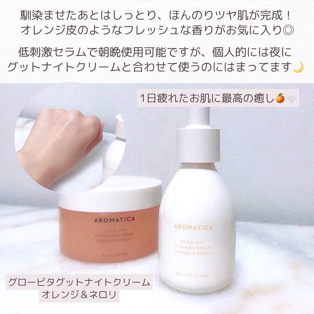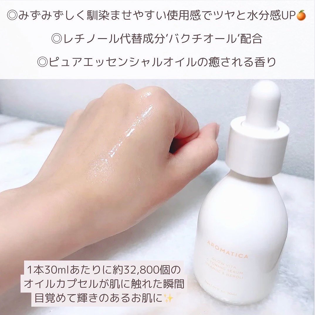 透明感のある肌になるために毎日使うのが楽しくなるアイテム紹介🍊 オレンジの栄養オイルカプセルがキラキラしている美容液🧡 オイルは肌に触れた瞬間新鮮なオレンジの香りになり、疲れた肌にエネルギーを与える美容液🍊 ナイアシンアミド5%配合でこちらも透明感を目指すアイテム🍊