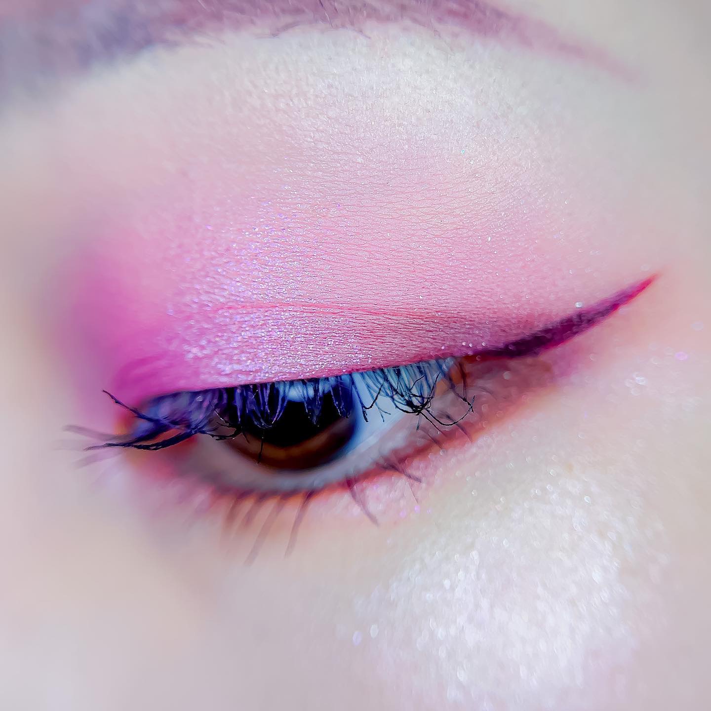 ピンクにグレージュも良いですね👌💗 今日は可愛らしい感じにしてみました💕 上下瞼黒目〜目頭側にラメを塗ってキラキラさせております🤩 目尻はマットのピンクを濃いめに重ねて💗 グレージュのアイライナーと相性◎
