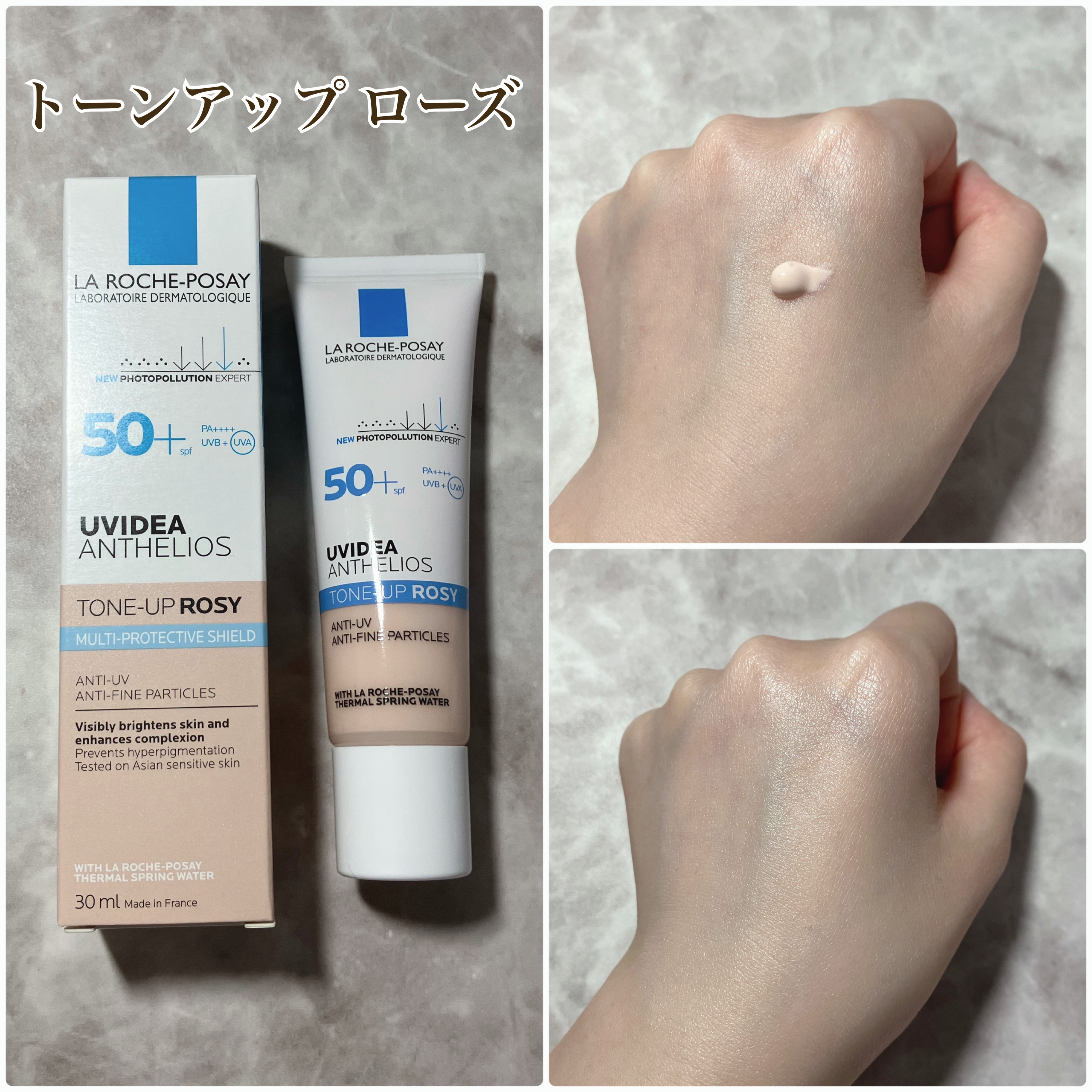 保湿力高めの下地が大好きなのでラロッシュポゼの下地はお気に入りでよく使います✨ かなりトーンアップします🤍自分は肌が黄ぐすみしやすいのでこれくらいトーンアップしてくれた方が時間がたった時にちょうどよくなります✨ 1番のお気に入りはローズです🌹肌から浮かない程よいトーンアップとほんのり血色感がよくなる所が大好きです🥰
