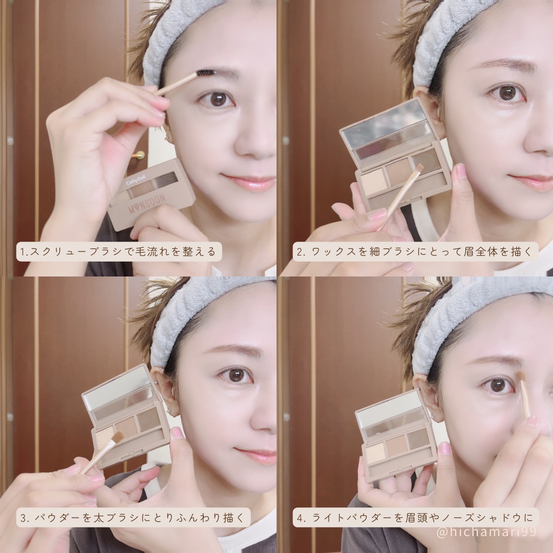 ワックス×パウダーのW密着構造 高温多湿なタイ国 お墨付きの耐久力で美眉に 擦っても落ちにくかったです✧︎ ワックスでここにのせるぞ〜と描いてからパウダーをのせると、しっかりのるし自然🤞 落ちにくい美眉メイクに ︎⸝⋆︎