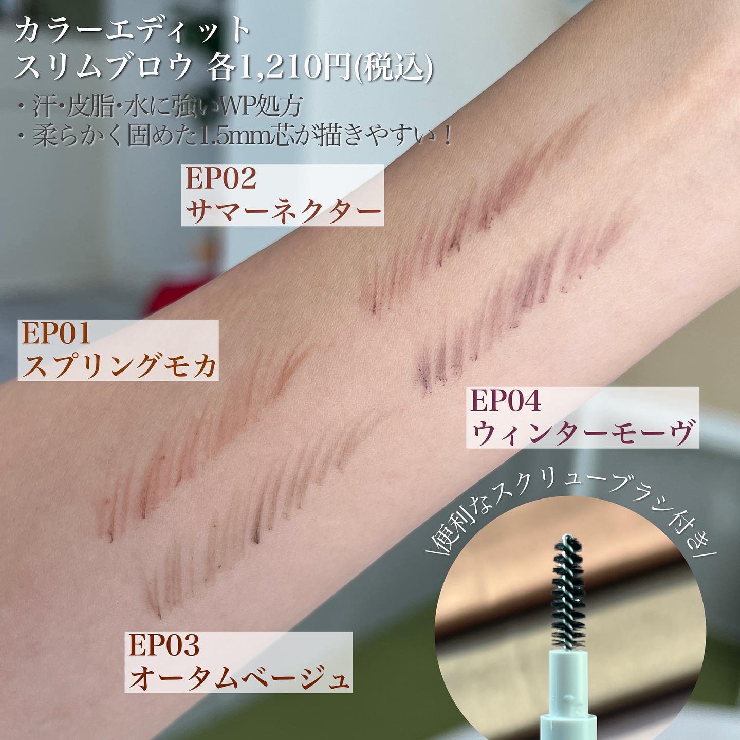 エクセルのパウダーアイブロウです💁♀️ 腕に塗ってみたところ、1つ1つの色が濃く、全部混ぜても濃い。。。 粉が出てきてしまうのは本当にショックでしたが、今使ってるモーヴカラーがもうなくなってしまうので、頑張って使ってみることにします💪 色もなんとか、1番下と混ぜながら濃くなりすぎないように頑張ってみます💪笑