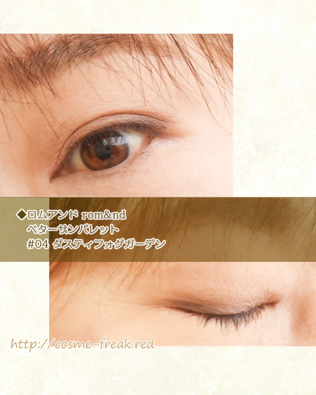 アイシャドウ塗るとなんかケバくなる…綺麗に塗れない…そんな時は「低彩度」に着目してみよう!💡ブラウンよりもグレーで陰影をつけると、メイクが濃くなりすぎずに自然に盛れる👍rom&ndベターザンパレット04ダスティフォグガーデングレー系だけどほん...
