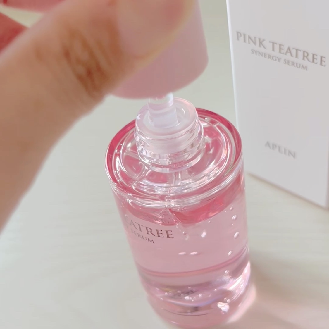 APLINの『ピンクティーツリーシナジーセラム』はティーツリーとシカエキス配合のニキビ・肌荒れ悩みをケアしてくれる美容液💗 このピンクカラーは人口色素を一切排除し原料本来のビタミンB12成分のカラーで、荒れた肌に水分と活力を与えお肌の調子を整えてくれます❣️ キャップを回すと自動的に一回分のセラムがスポイトに吸い上げてくれるので、量を調節したりせずとっても便利✨