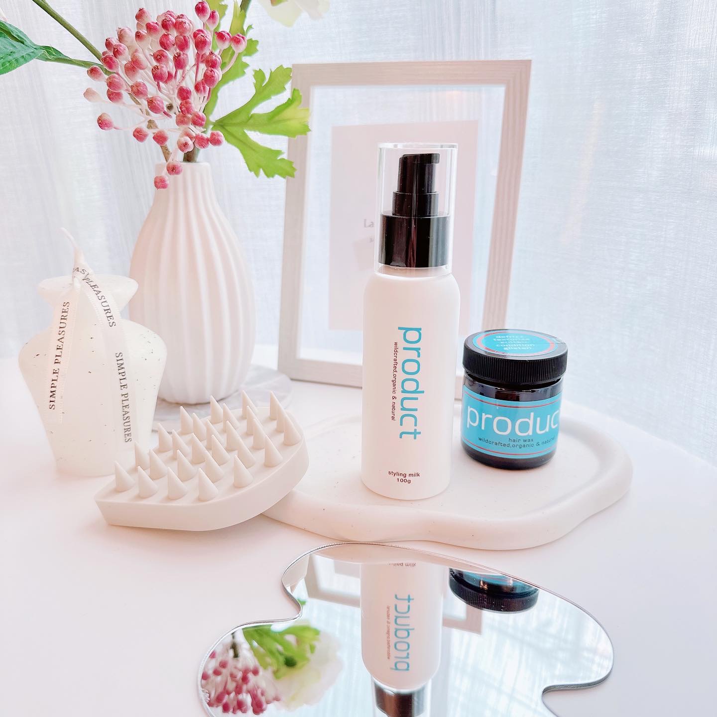 オーガニックヘアケアブランドの product様人気のヘアワックス🌷 ヘアスタイリングはもちろん天然由来原料のみで作られているため髪やお肌にリップやネイルなど全身に潤いを与えてくれて保湿ケアできるマルチバーム✨ 少し固めのテクスチャーですが手に取ると柔らかくなり程よいツヤ感が出て使いやすい🤍 髪のパサつきを抑えてくれるしべたべたしすぎないのも良いのでお気に入りのヘアワックスです🤍🤍