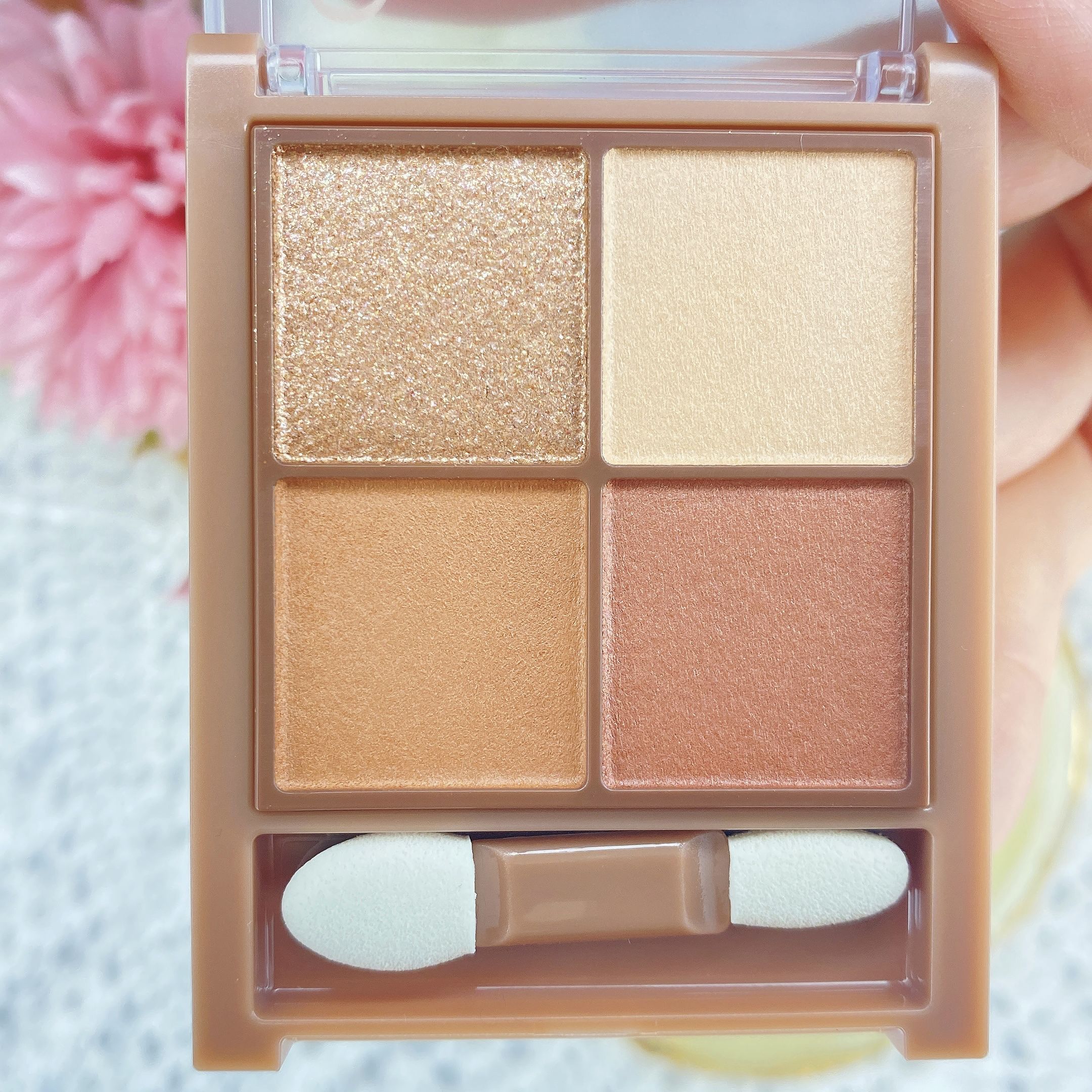 透け感マット×濃厚ブラウンの4色アイシャドウ。 しっかり目元を引き締めるビターなブラウンカラー。 透け感のあるブラウンを重ねて、自然な陰影のある目元へ。 ふんわり柔らかなパウダーなので、スルスル伸びてまぶたにピタッと密着。 保湿成分(スクワラン、ホホバ種子油)配合。