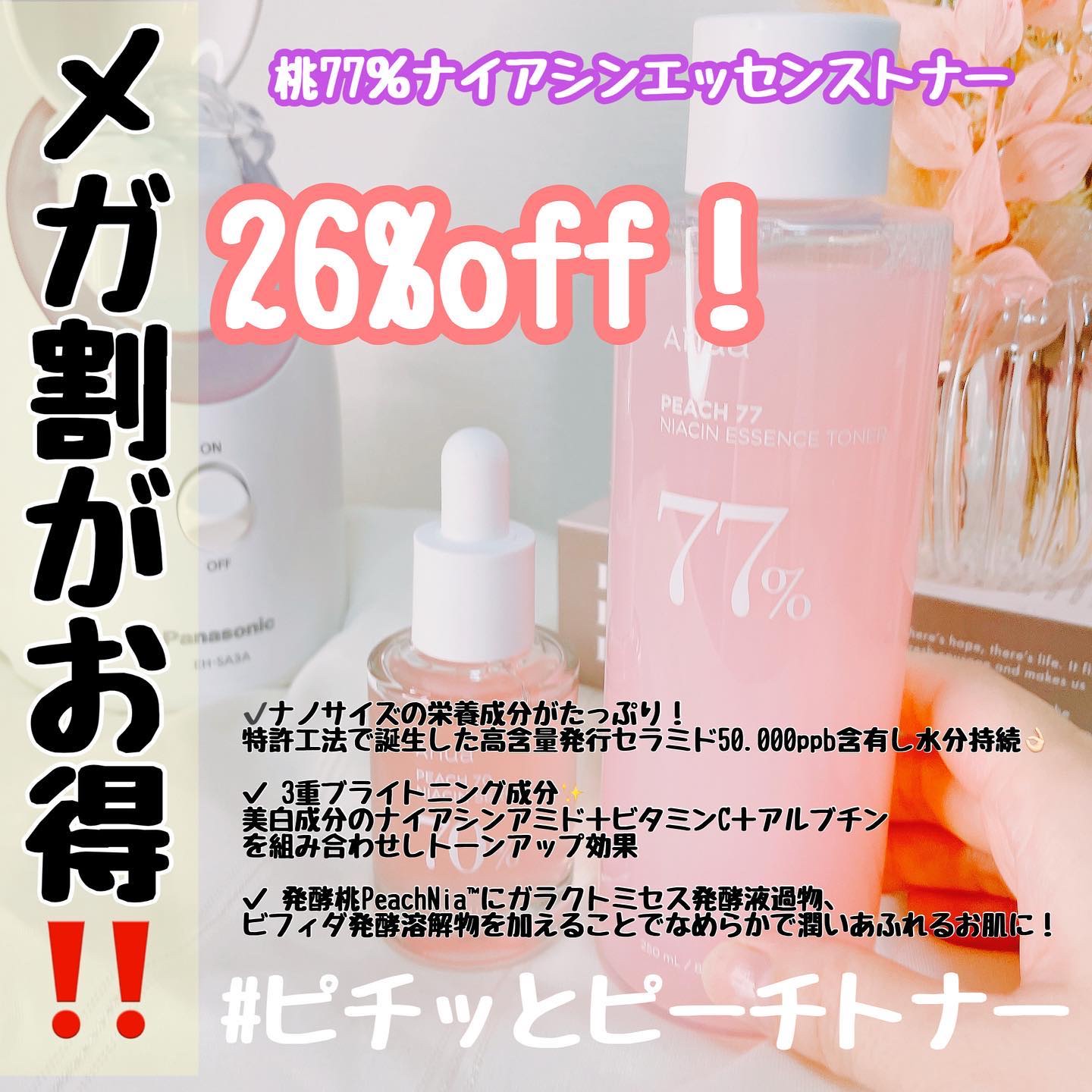 みずみずしい透明感、肌にチャージ🫧Anua桃77ナイアシンエッセンストナー\ピーチエキス×ナイアシンアミド配合!/ツルッとしたキメ肌に整え、メイクの土台を整えてくれるトナー✨💧少しとろみがあるのにベタつかずしっとり保湿💧重ね付けやコットンパッ...