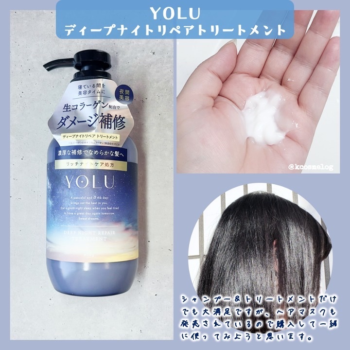 生コラーゲン※1配合で傷んだ髪もなめらか🫧YOLUディープナイトリペアシャンプートリートメントYOLU全3シリーズのシャントリがリニューアル🤍高保湿の生コラーゲン※1配合で特に傷んだ髪もなめらかに⭐︎YOLU大好きでどのシリーズもツボだったん...