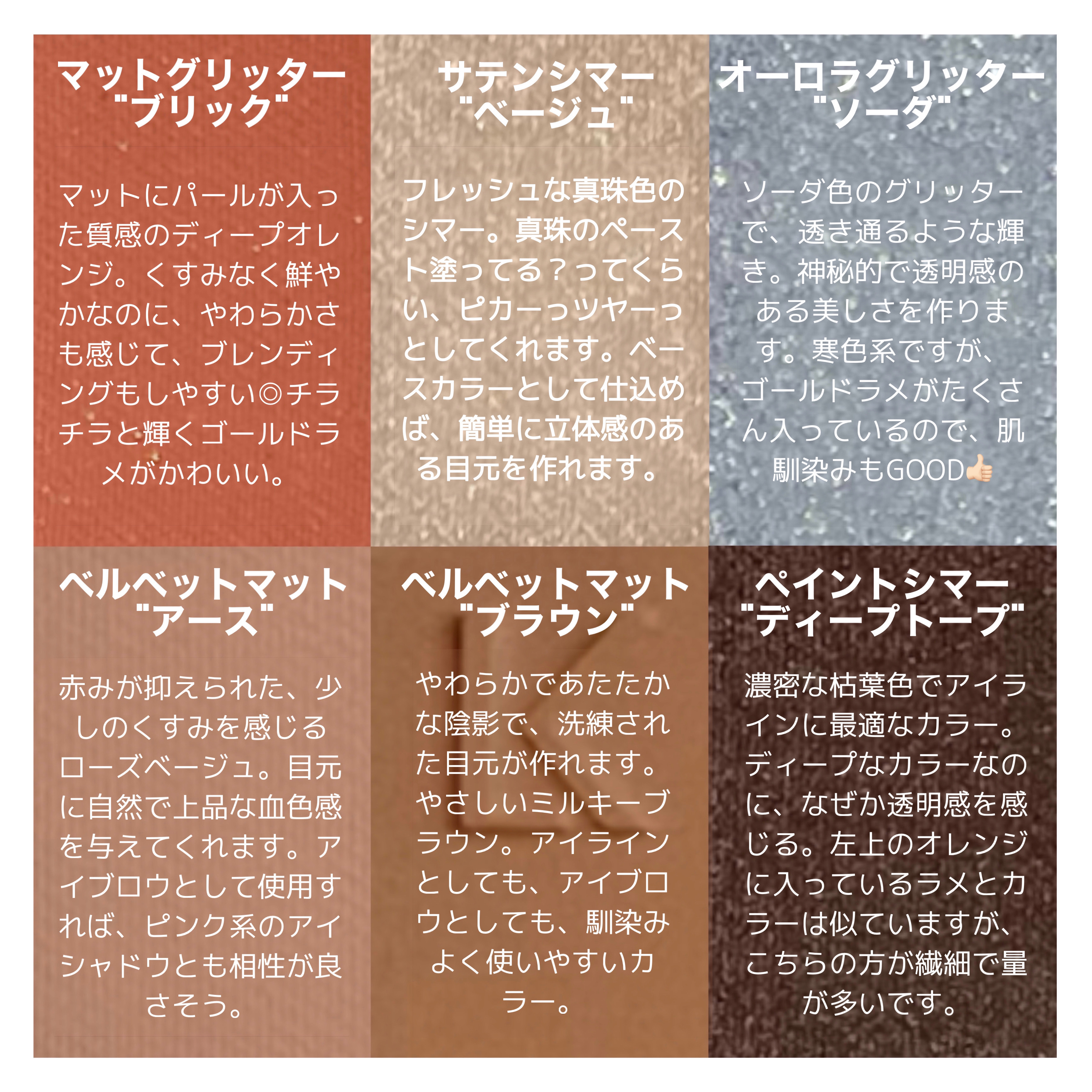 | アイシャドウパレットランキング第6位 | ラメ・パール・ツヤのバランスが天才で、まぶたにうるおいをまとったような上品なきらめき✨ | 詳細を見る | |