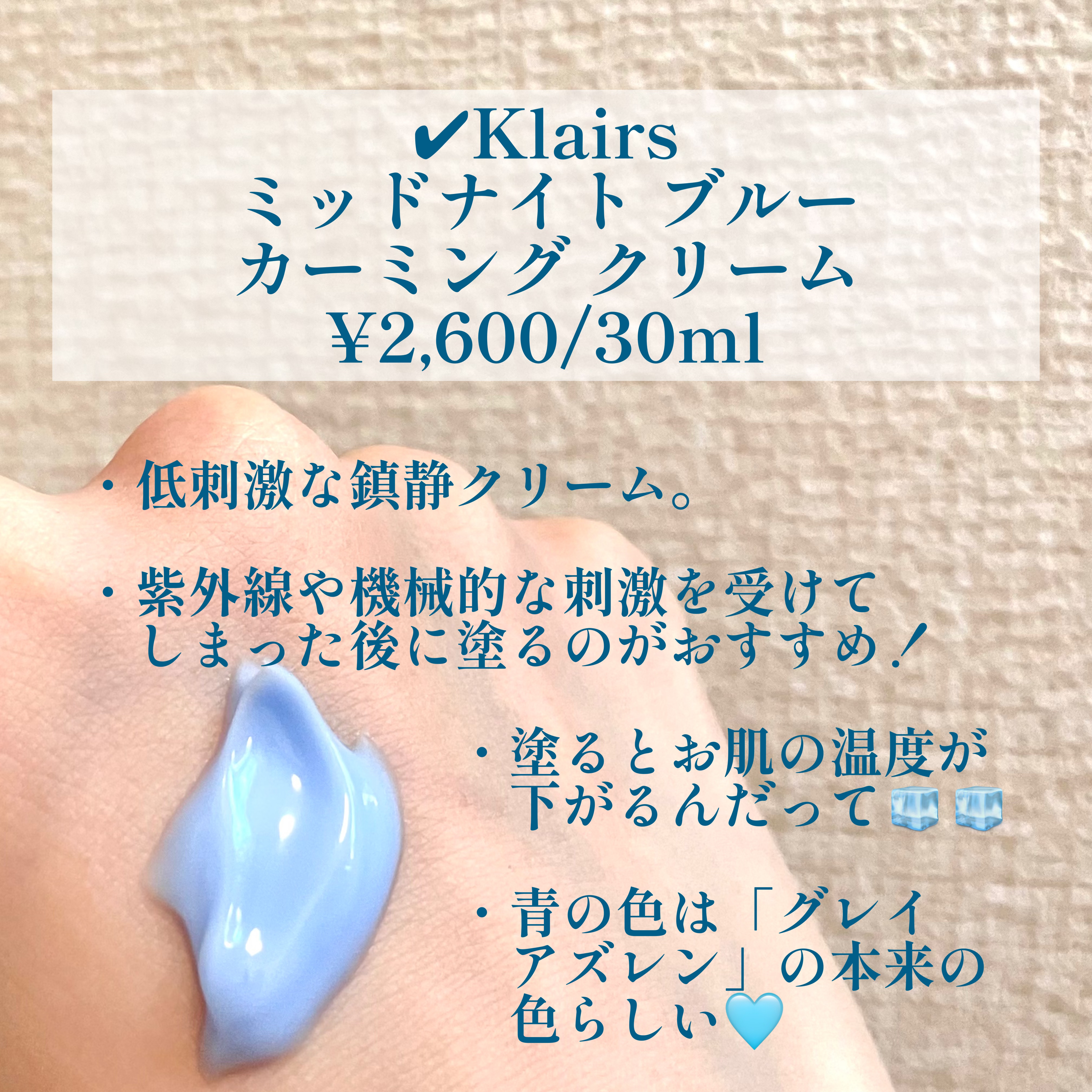 Klairs ミッドナイトブルーカーミングクリーム | 2,600円 |