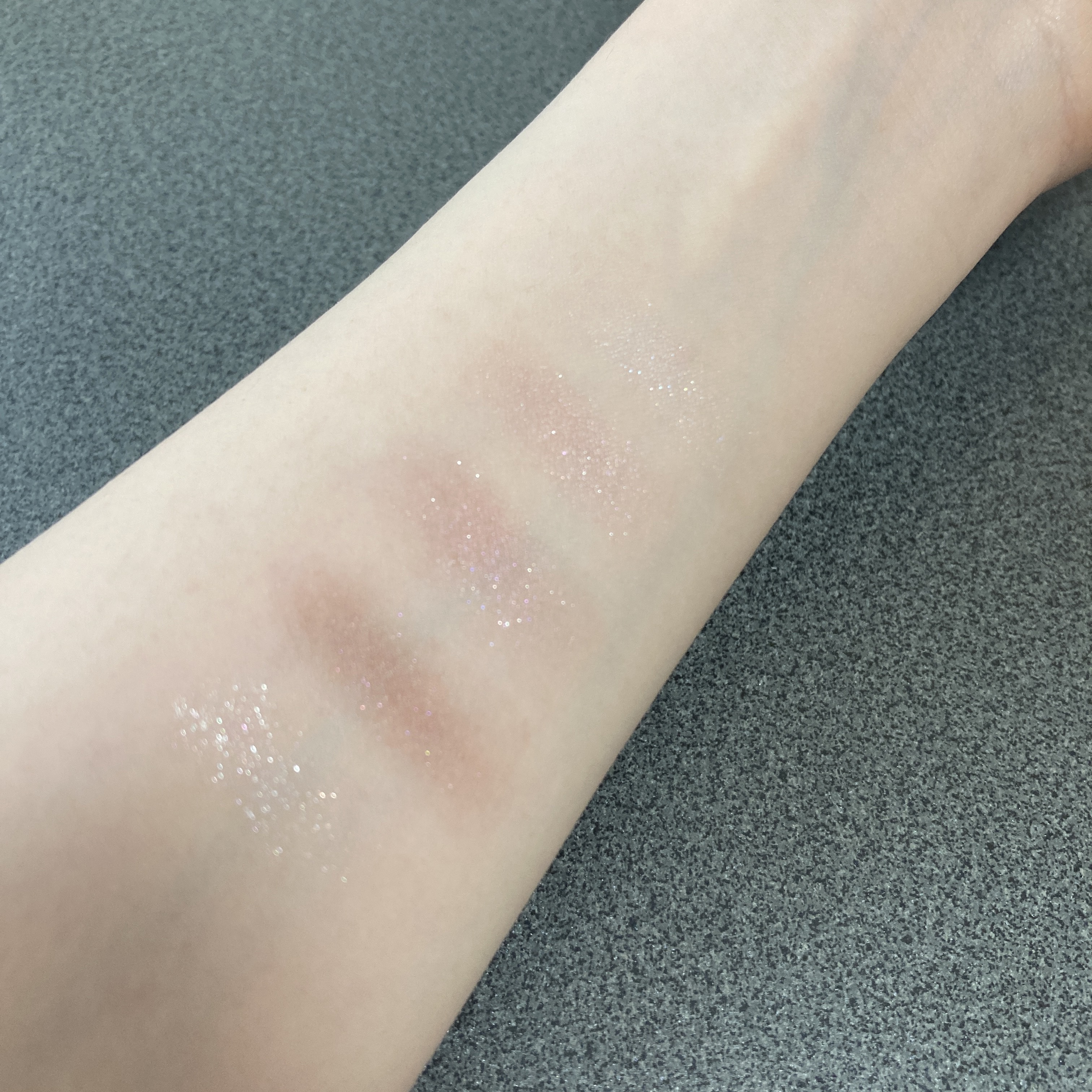 キャンメイク▷ピンクっぽい、鮮やか excel▷オレンジっぽい、淡くもできる キャンメイクはこちらをベースに推していることもあって、少し色がつきやすいかな? エクセルは最後に仕上げでニュアンス乗せる感じの使い方を推していたので少し薄いような。 少しキャンメイクの方がピンクみが強い。 コーラルピンク(?)は私の目には大差ないしいていうならやはりキャンメイクの方がピンクみが強い。 エクセルは透明感があって肌に溶け込むような印象 いちばん違うのは左下!パレットの段階から雰囲気違いますがキャンメイクの方が明るくピンク寄りエクセルは落ち着いたオレンジ寄り 右下の締め色どちらもそんなに暗くはないのかな?キャンメイクの方がはっきりつきやすくて、紫みが強い感じがします。エクセルはこちらの色でも透明感を感じる。どちらにも青っぽいラメが入ってます.