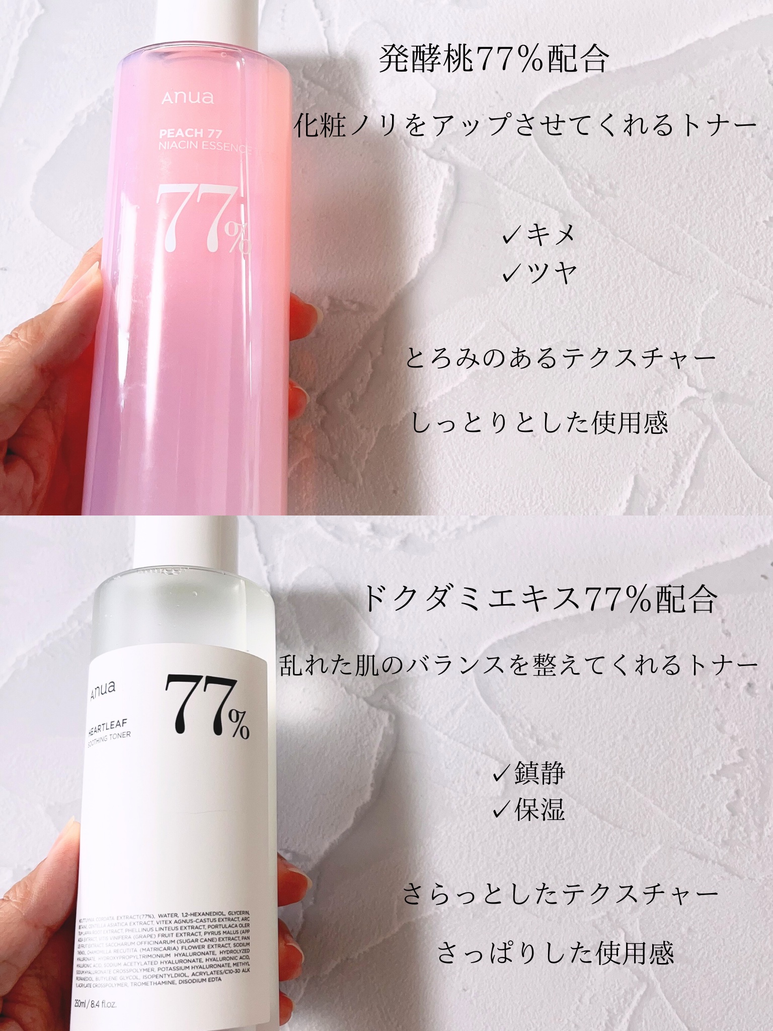 みずみずしい透明感、肌にチャージ🫧Anua桃77ナイアシンエッセンストナー\ピーチエキス×ナイアシンアミド配合!/ツルッとしたキメ肌に整え、メイクの土台を整えてくれるトナー✨💧少しとろみがあるのにベタつかずしっとり保湿💧重ね付けやコットンパッ...