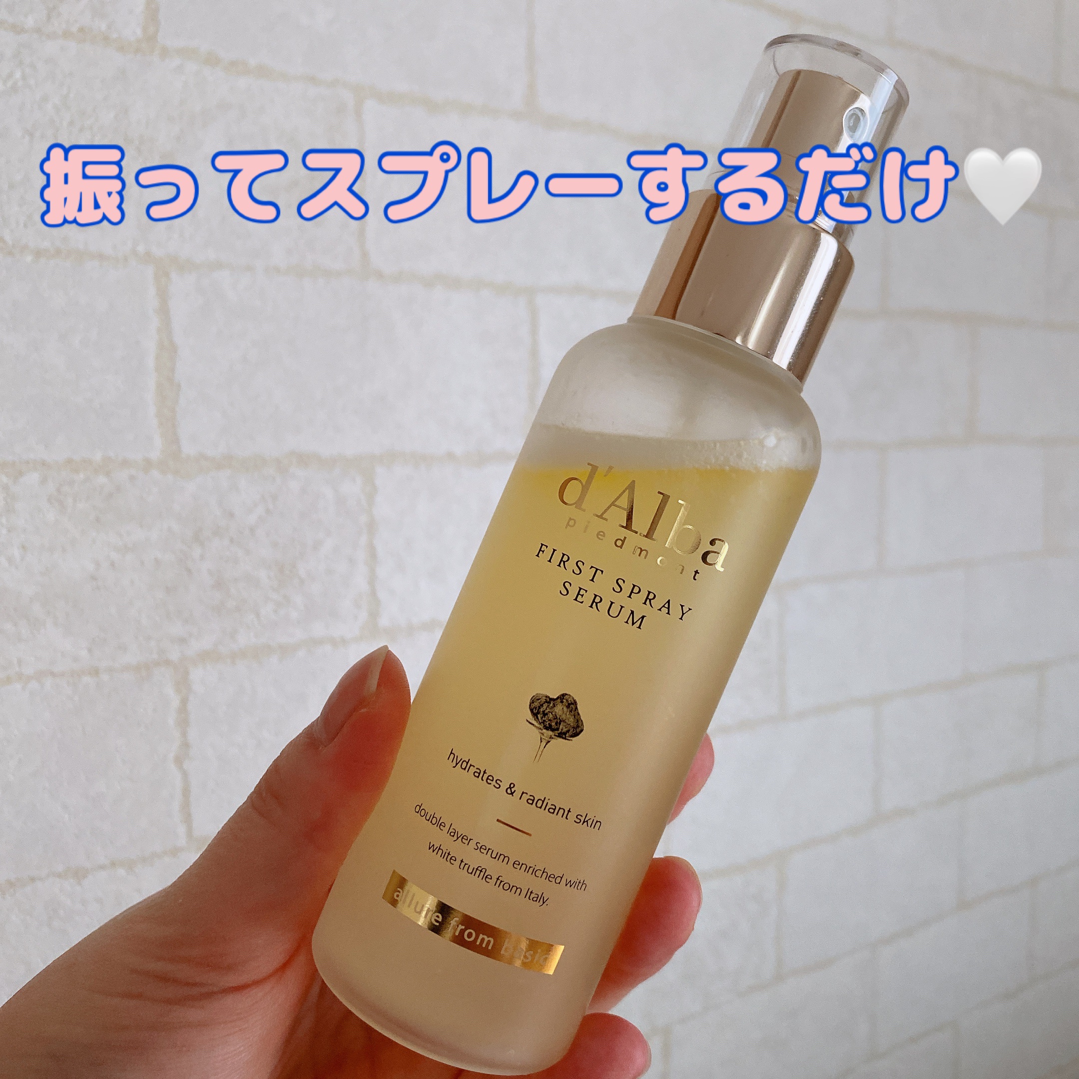。.ꕤ‿ダルバホワイトトリュフファーストスプレーセラム‿ꕤ.。"CAミスト"人気だからずっと気になっていたけれど、オイルだから肌がべたつくイメージあって、肌に合わなかったらどうしよう…と買う勇気出ずだったのですが、ドンキでミニボトルが売ってい...