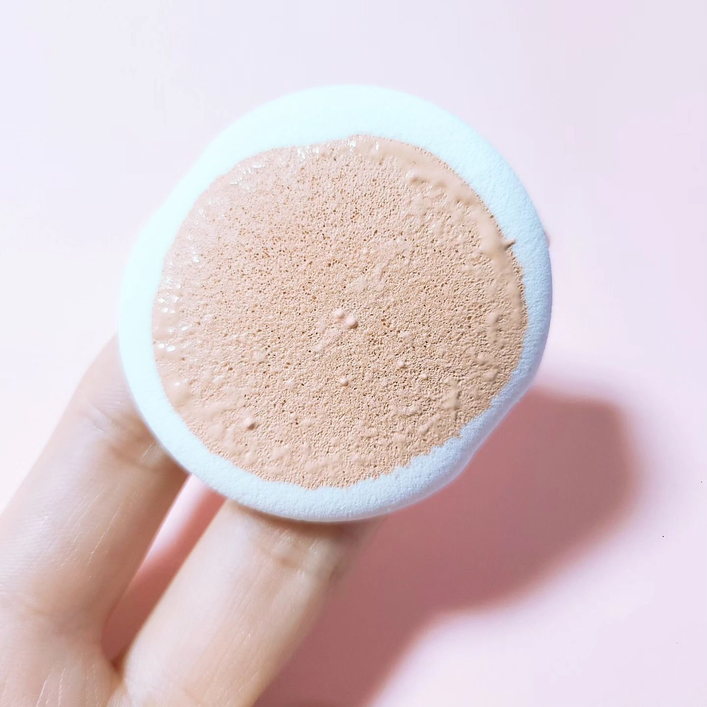 クッションを押すとジワ~っとファンデーションがつきます。 肌につけた感じはしっかりしたカバー力でつや感のある仕上がりです。 少し塗りムラを感じますがムラがでるところを手で馴染ませれば全然大丈夫💮 毛穴もしっかりカバーできています。 そして、密着力が高くマスクにもつきにくい! このつや感のある仕上がりが私はめっちゃ大好きです💖