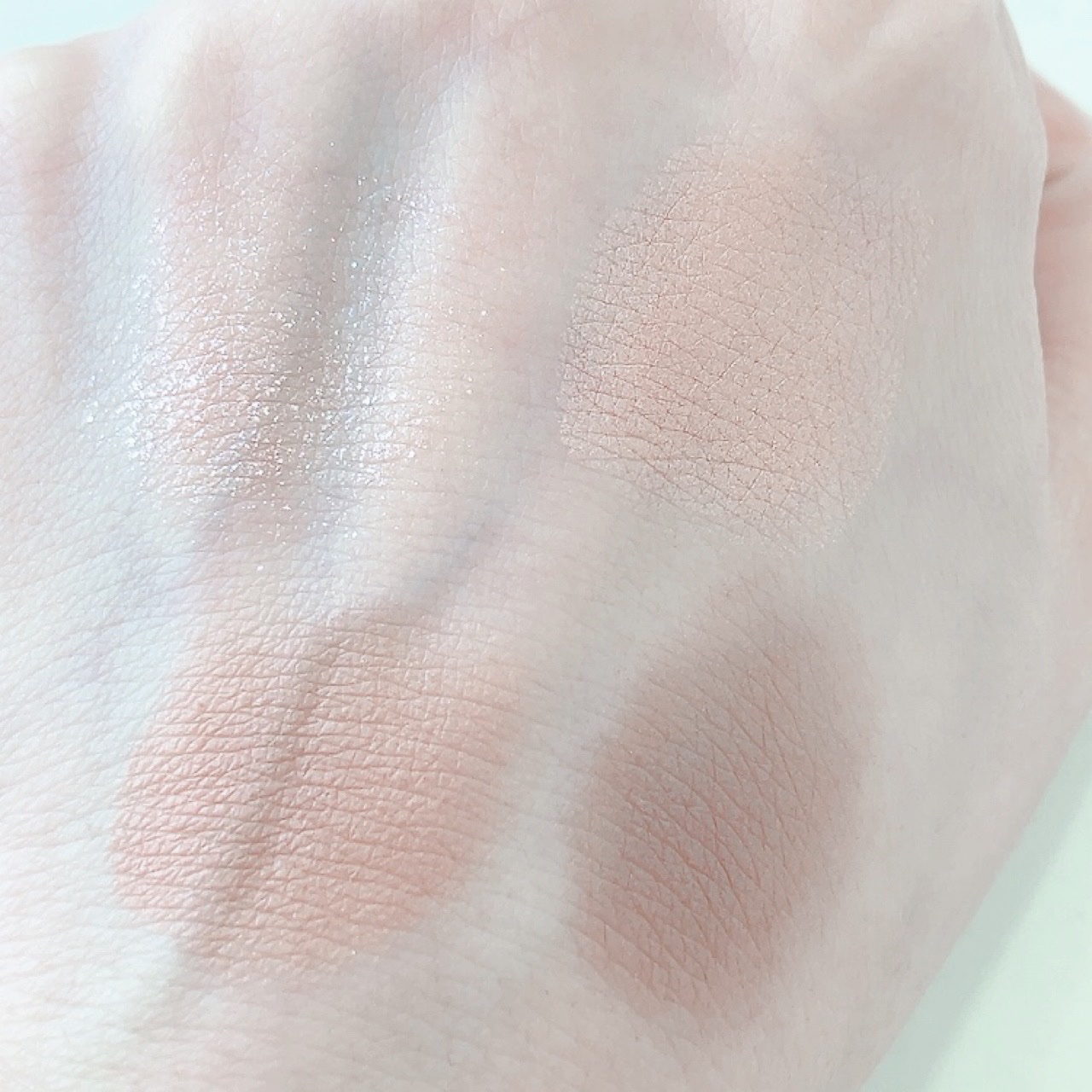 左上のカラーはマットシャドウの中にパールが配合されていて上品な発色で、涙袋爆誕する! 右上のカラーはグレーベージュのようなカラー。二重を強調したり涙袋の影を描くのに良さそう。 左下のカラーは宝石のようなラメ💎 一気に華やかに仕上がる。 右下はハイライトカラー。ホワイトパールで立体感を演出。 お仕事メイクに使いたいと思ってるので、メイクするのが楽しみです💄🤍