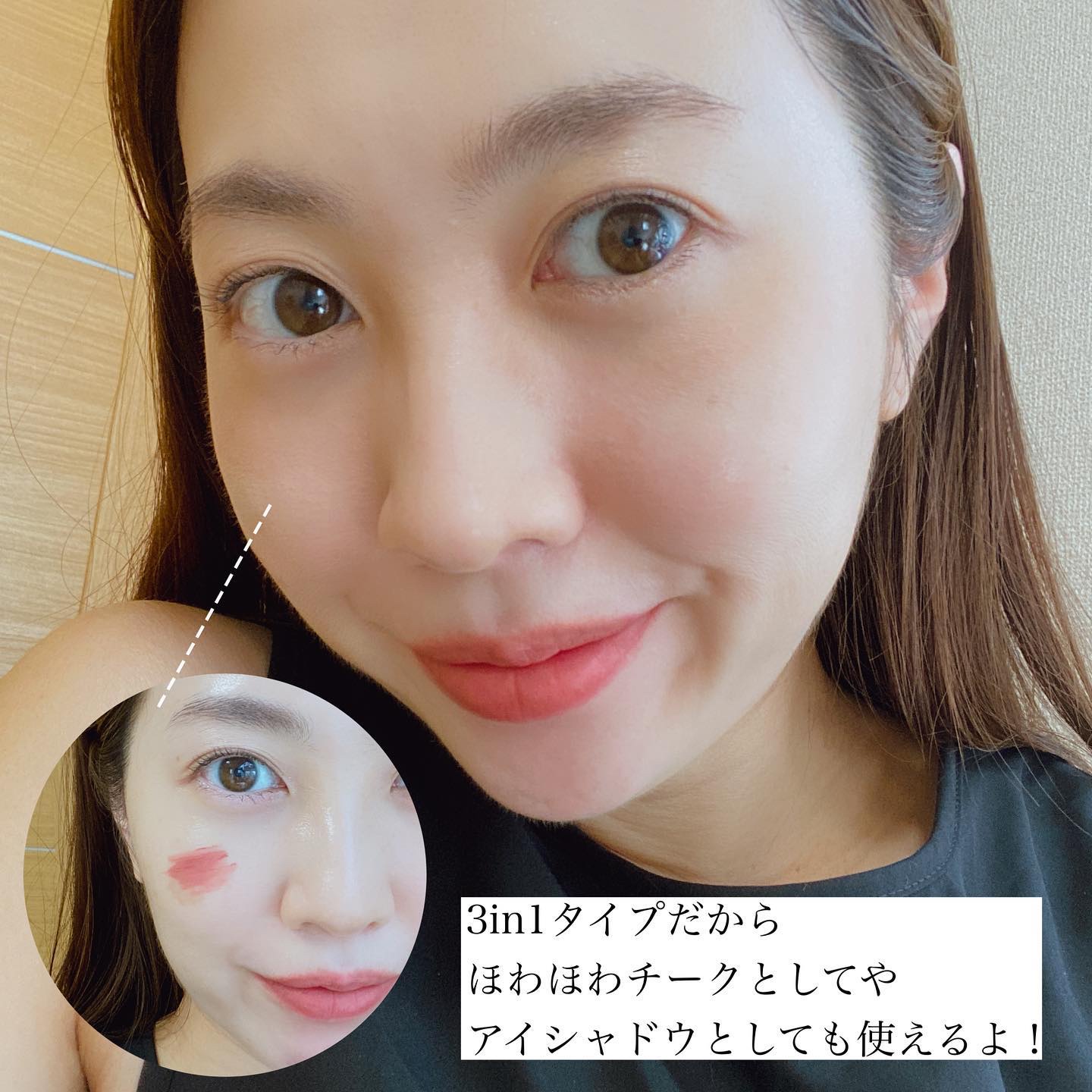 マットだけど、軽めなつけ心地 ✔︎ピッタリ密着 ✔︎色残りめっちゃする!! ある日ヘアメイクアーティストの方がおすすめされていて、購入してみたところ、なんとっ可愛いっ😍 チークとしては、(私の肌には)色が暗かった