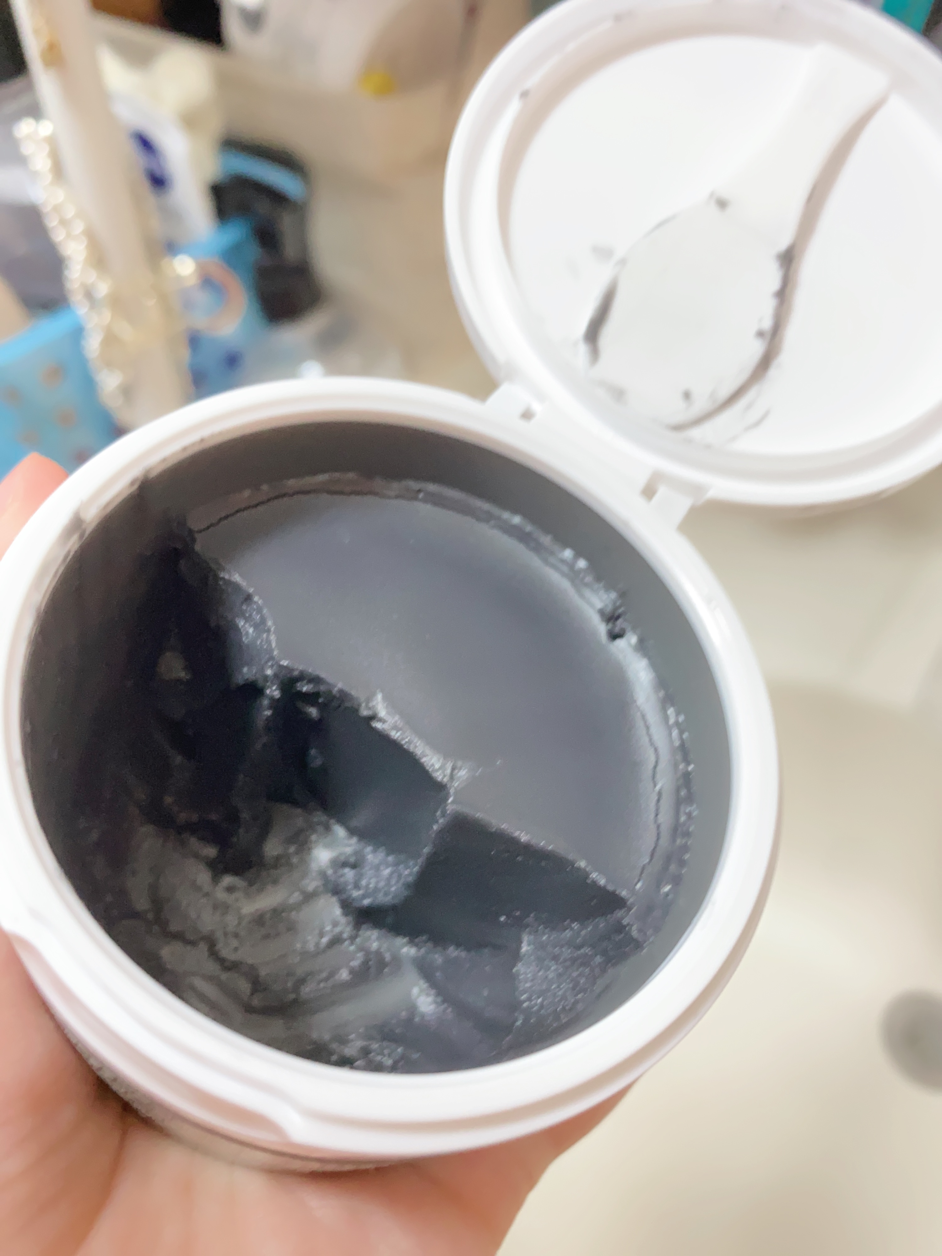 やらかい温かくてトロトロ! スパチュラで手にのっけて手のひらでほぐして 顔へトロトロになるからほっぺ デコは手のひら 鼻とか細かい部分わ指でクルクルクルーっとしながら マッサージ んで、手にお湯とってなでなでしながら乳化さして流す! モチモチしっとり洗い上がり