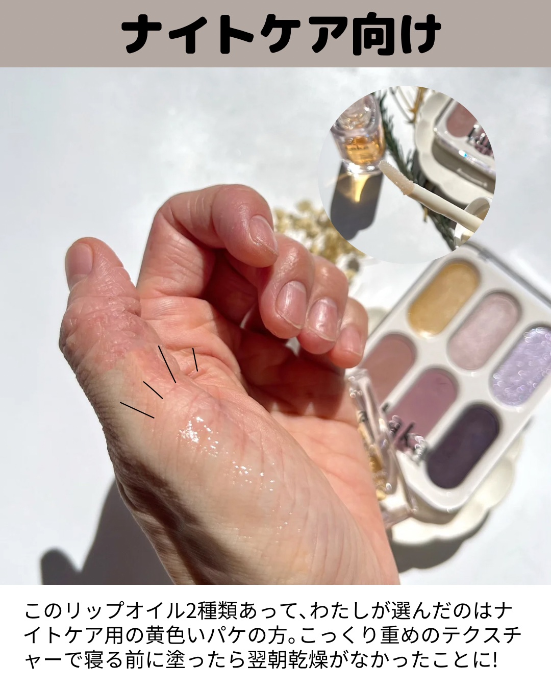 | リップクリーム・リップケアランキング第81位 | 重すぎないほんのりとろっとしたテクスチャーのリップオイルです。 唇に乗せるとちゅるちゅるで可愛い! | 詳細を見る | |