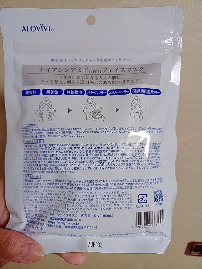 商品詳細情報アロヴィヴィ ナイアシンアミドフェイスマスク