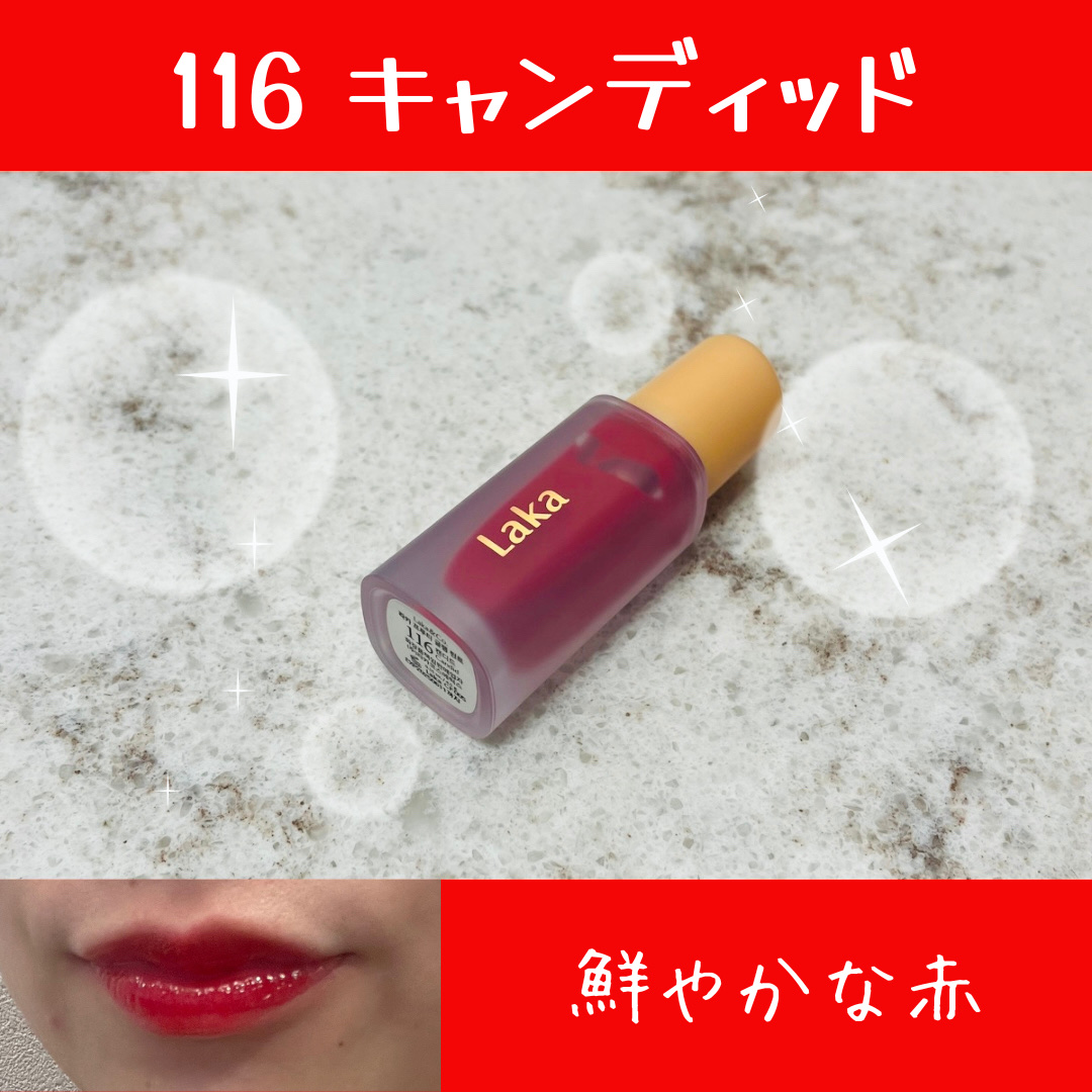 Lakaフルーティーグラムティント ¥1,980自分の記録用です!113プレジャー116キャンディッド118アドアー120カフェインローズ#laka#ラカ_リップ #ラカ#Qoo10メガ割...