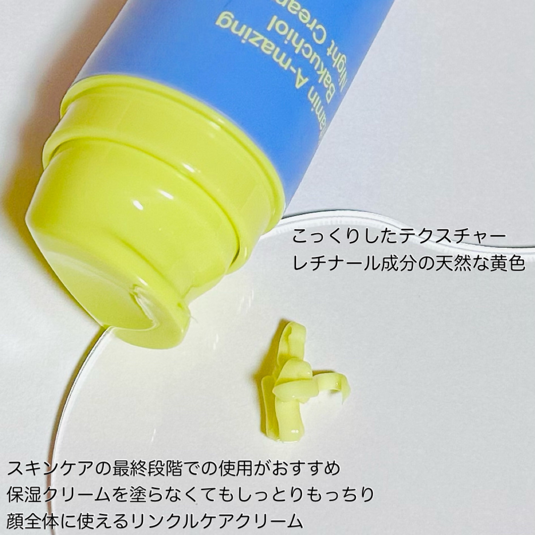 バクチオールとレチナール配合で毛穴レスなもち肌へ導くナイトクリーム🌙 植物性レチノールと呼ばれるバクチオールと、レチノールよりも活性物質に変換の早いレチナール配合でお肌のターンオーバーを促し滑らかで健康的なお肌へ導いてくれる✨ こっくりしつつも油分みはそれほど無く、伸びの良いテクスチャー💛 お肌へのフィットも良くベタつきもすくないので使いやすい✨ 肌キメをととのえてモッチリ健やか肌へと導く肌質ケアにはオススメ! 使い続けて期待したいナイトクリーム🌙✨