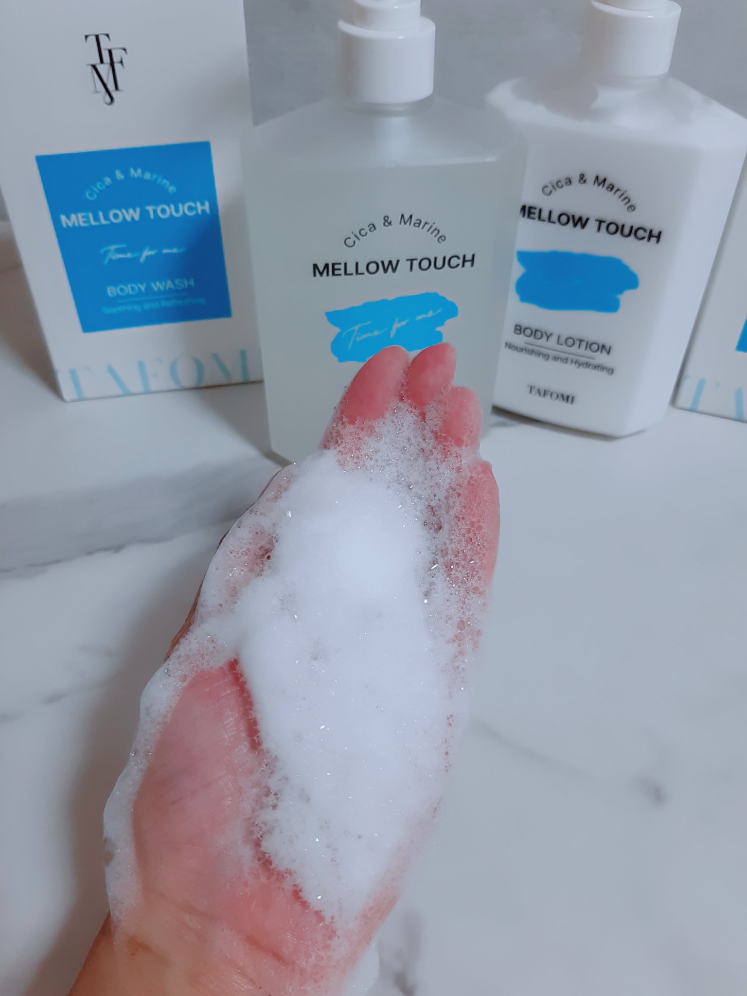 【#TAFOMI ボディソープ, ボディローション】を#15bako さんを通じてお試しさせていただきました💕#pr ✅#メロウタッチボディウォッシュ→ ・マイルドなピーリング効果で洗うだけで角質ケア。 ・11種のヒアルロン酸や肌のバリアケアを高めるパンテノール配合! ・弱酸性 ✅#メロウタッチボディローション ・#シアバター 配合 ・弱酸性 香りが強すぎない、良い香り〜 ジャスミンやローズの香りを僕は結構感じました。ムスクの主張はマイルド。このバランスが良いです♪ ボディーソープはしっとりするような感じで、これから秋になったときの乾燥ケアに良さそう。 ボディーローションはとってもみずみずしく、水分感のあるようなテクスチャーで寝る時につけてもペタペタ感がなくて快適♪