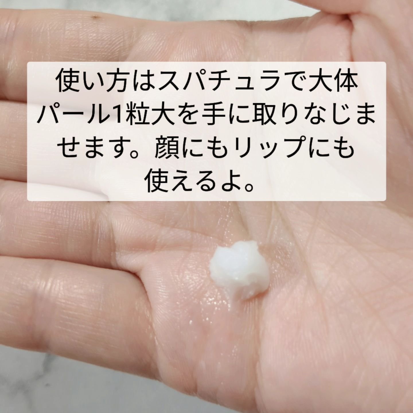 摩擦レスな使用感、低刺激処方で敏感肌に配慮した処方設計。 水分を抱え込み、水分蒸発を防ぎうるおいを密封して乾燥から守るバームだよ。 無香料だから香りもなく使いやすいよ。顔はもちろん唇にも使えるからリップケアとしても◎