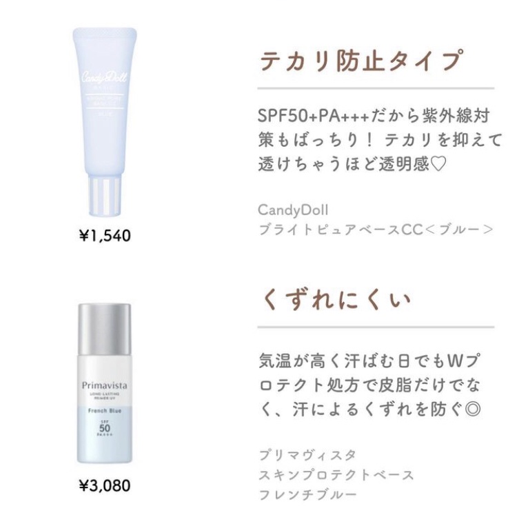 青み系下地比較!プリマヴィスタのブルーの下地を購入したのでブルー系の下地と色味の比較をしてみました🩵プリマヴィスタは、青くなりすぎずちょうどよい感じです。化粧崩れもしにくいです✨ただ少しキシキシする乾燥を感じました。崩れないのは大事なので、し...