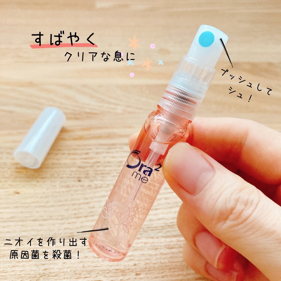 オーラツーミー マウススプレー シトラスミントは、コンパクトなサイズ感なので持ち運びも便利だし、口にスプレーしやすいのも嬉しいポイント😊 シトラスミントは、シャープな刺激が口元に広がるので最初使った時は驚きました💦 それでも、ふんわりと香るシトラスミントはクサイと微塵も思われないような爽やかさ! 口臭ケアを手軽にしたい人におすすめです!また、人と話す機会が多い方や出張などですぐ歯磨きできない方にもオススメ🌈