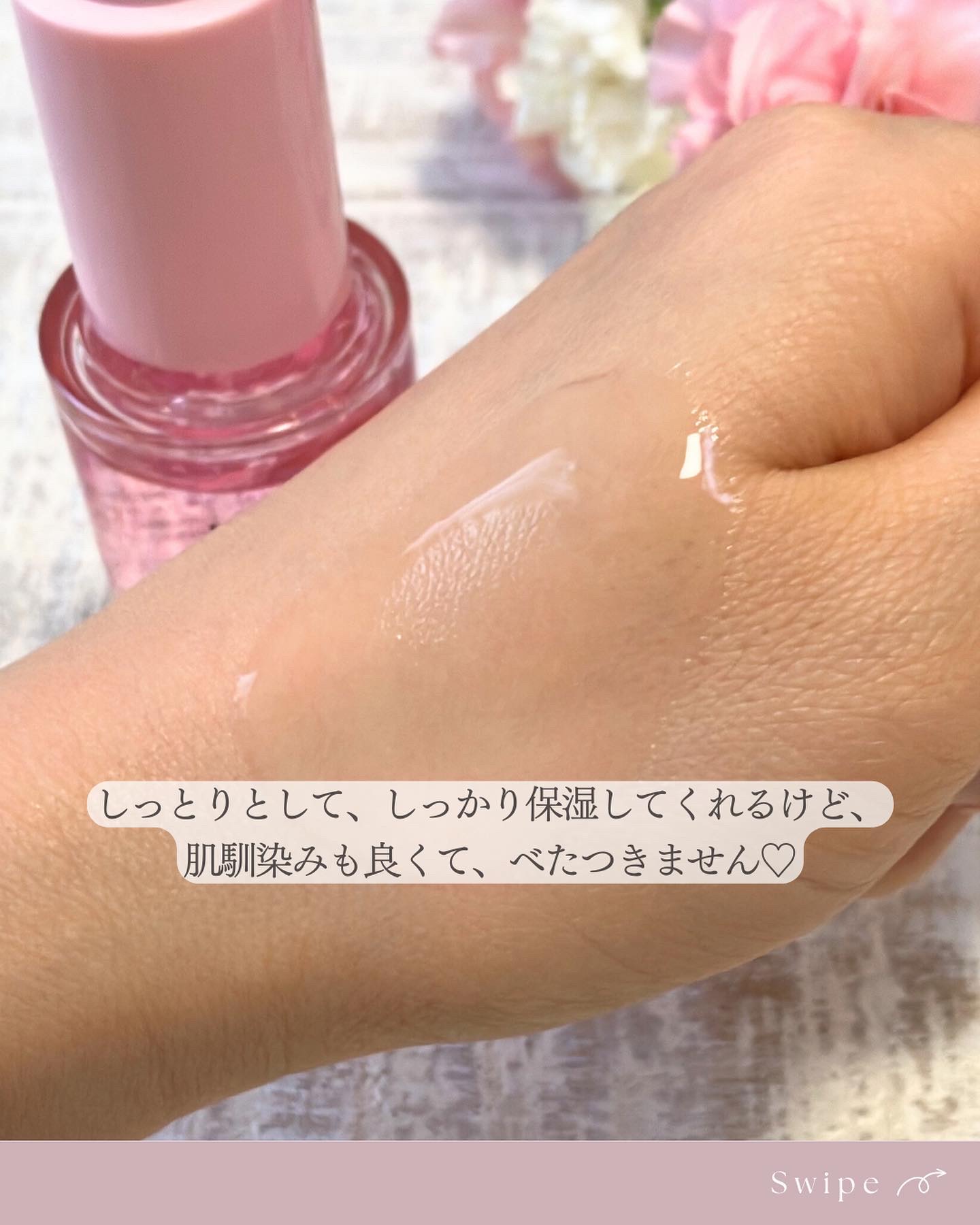 | スルスルっと伸びて、肌になじむとほんのりツヤ感を感じます。 後肌はさらり。 | 詳細を見る | ||