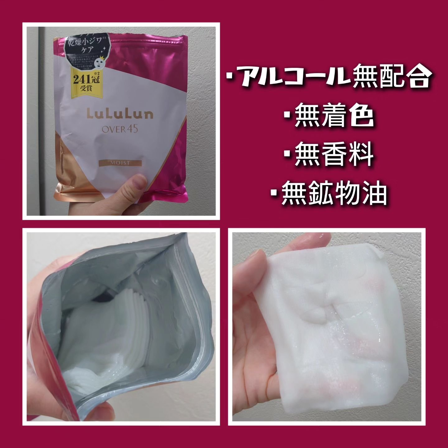 ☆ルルルンOver45カメリアピンク大好きルルルンのフェイスマスクからでたOver45 こちらはモイストタイプのカメリアピンククリアタイプのアイリスブルーもあるよ年齢を重ねてホルモンバランスが崩れてくるとお肌の乾燥やトラブルに繋がってくるらし...