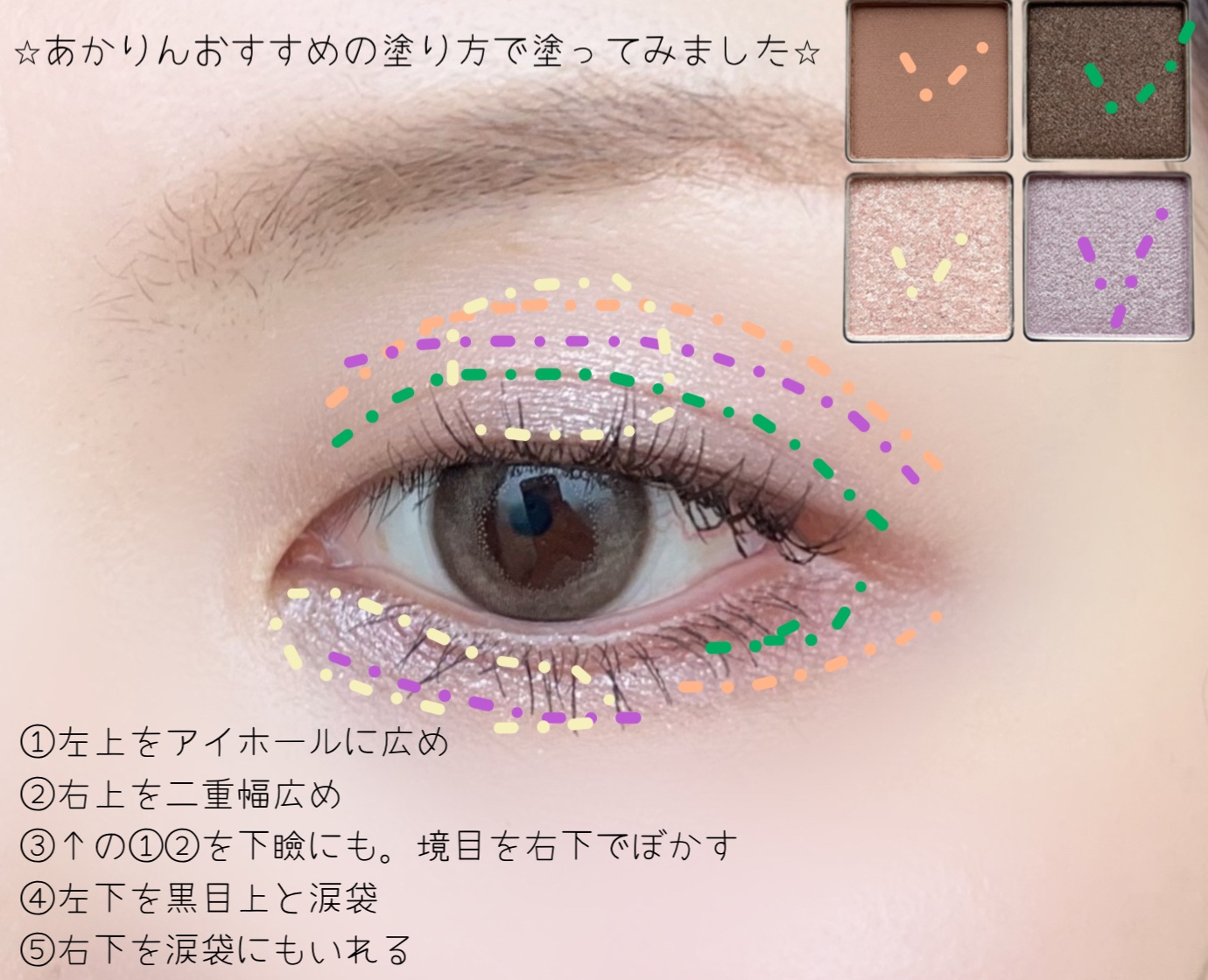 意外と見た目より使いやすくてびっくり! たぶん2ndがブルベ冬のイエベさんなら使えるかと思います…! 購入時お話したBAさんにオススメされたのは、下段の左、薄いピンクをアイホール全体にまず塗ってから、その隣のラベンダーを塗ると馴染みがよくなるのでオススメとのことです✨ パープルの使い方はBAさんに教えて頂いた方法です(`・ω・´)✨ かなり悩んだのですがほんと購入してよかった…!