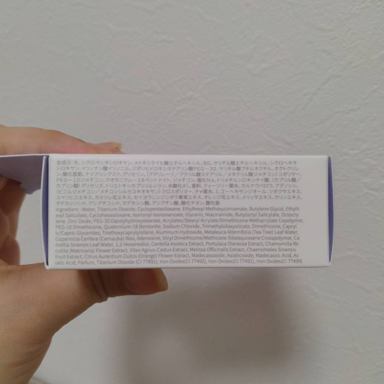 - <17号 フローラルベージュ> 水、シクロペンタシロキサン、メトキシケイヒ酸エチルヘキシル、BG、サリチル酸エチルヘキシル、シクロヘキサシロキサン、イソノナン酸イソノニル、ジポリヒドロキシステアリン酸PEG-30、サリチル酸ブチルオクチル、オクトクリレン、酸化亜鉛、ナイアシンアミド、グリセリン、(アクリレーツ/アクリル酸ステアリル/メタクリル酸ジメチコン)コポリマー、PEG-10ジメチコン、クオタニウム-18ベントナイト、ジメチコン、塩化Na、トリメチルシロキシケイ酸、(カプリル酸/カプリン酸)グリセリズ、水酸化Al、トリエトキシカプリリルシラン、香料、ティーツリー葉水、カルナウバロウ、アデノシン、(ビニルジメチコン/メチコンシルセスキオキサン)クロスポリマー、チャ葉水、1,2-ヘキサンジオール、ツボクサエキス、スベリヒユエキス、カミツレ花エキス、セイヨウニンジンボク果実エキス、オレンジ花エキス、メリッサエキス、カリンエキス、マデカッソシド、アシアチコシド、マデカシン酸、アシアチン酸、酸化チタン、酸化鉄 <21号 パウダリーベージュ> 水、シクロペンタシロキサン、メトキシケイヒ酸エチルヘキシル、BG、サリチル酸エチルヘキシル、シクロヘキサシロキサン、イソノナン酸イソノニル、ジポリヒドロキシステアリン酸PEG-30、サリチル酸ブチルオクチル、オクトクリレン、酸化亜鉛、ナイアシンアミド、グリセリン、(アクリレーツ/アクリル酸ステアリル/メタクリル酸ジメチコン)コポリマー、PEG-10ジメチコン、クオタニウム-18ベントナイト、ジメチコン、塩化Na、トリメチルシロキシケイ酸、(カプリル酸/カプリン酸)グリセリズ、トリエトキシカプリリルシラン、水酸化Al、香料、ティーツリー葉水、カルナウバロウ、アデノシン、(ビニルジメチコン/メチコンシルセスキオキサン)クロスポリマー、チャ葉水、1,2-ヘキサンジオール、ツボクサエキス、スベリヒユエキス、カミツレ花エキス、セイヨウニンジンボク果実エキス、オレンジ花エキス、メリッサエキス、カリンエキス、マデカッソシド、アシアチコシド、マデカシン酸、アシアチン酸、酸化チタン、酸化鉄 <23号 ウッディベージュ> 水、シクロペンタシロキサン、メトキシケイヒ酸エチルヘキシル、BG、サリチル酸エチルヘキシル、シクロヘキサシロキサン、イソノナン酸イソノニル、ジポリヒドロキシステアリン酸PEG-30、サリチル酸ブチルオクチル、オクトクリレン、酸化亜鉛、ナイアシンアミド、グリセリン、(アクリレーツ/アクリル酸ステアリル/メタクリル酸ジメチコン)コポリマー、PEG-10ジメチコン、クオタニウム-18ベントナイト、ジメチコン、塩化Na、トリメチルシロキシケイ酸、(カプリル酸/カプリン酸)グリセリズ、トリエトキシカプリリルシラン、水酸化Al、香料、ティーツリー葉水、カルナウバロウ、アデノシン、(ビニルジメチコン/メチコンシルセスキオキサン)クロスポリマー、チャ葉水、1,2-ヘキサンジオール、ツボクサエキス、スベリヒユエキス、カミツレ花エキス、セイヨウニンジンボク果実エキス、オレンジ花エキス、メリッサエキス、カリンエキス、マデカッソシド、アシアチコシド、マデカシン酸、アシアチン酸、酸化チタン、酸化鉄
