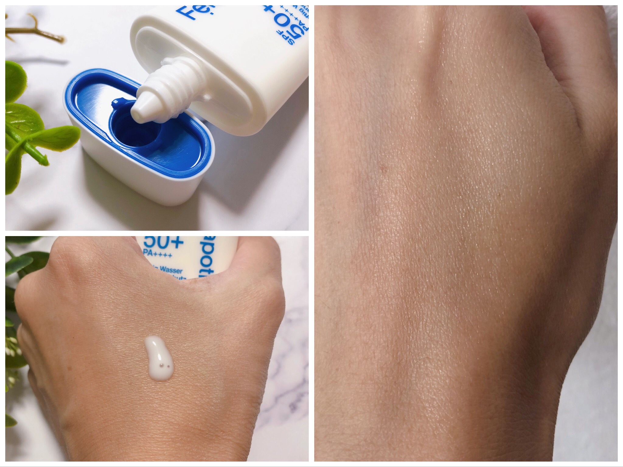 フェルドアポテケならではのエアメッシュ(Air-mesh)技術で、軽く塗っても固まらずに薄く塗布され、光だけでなく熱老化まで管理できるようクーリングケア技術が加わっています。 ヒノキの樹液とオート麦成分が刺激された肌を鎮静させ、肌の奥までしっとり 残留感、べたつきがなく空気のようにフィット とろ〜っと流れるように みずみずしくてサラサラしたテクスチャー💙 ベタつくことなく、するする伸びて、しっとりするので使いやすいです☺️