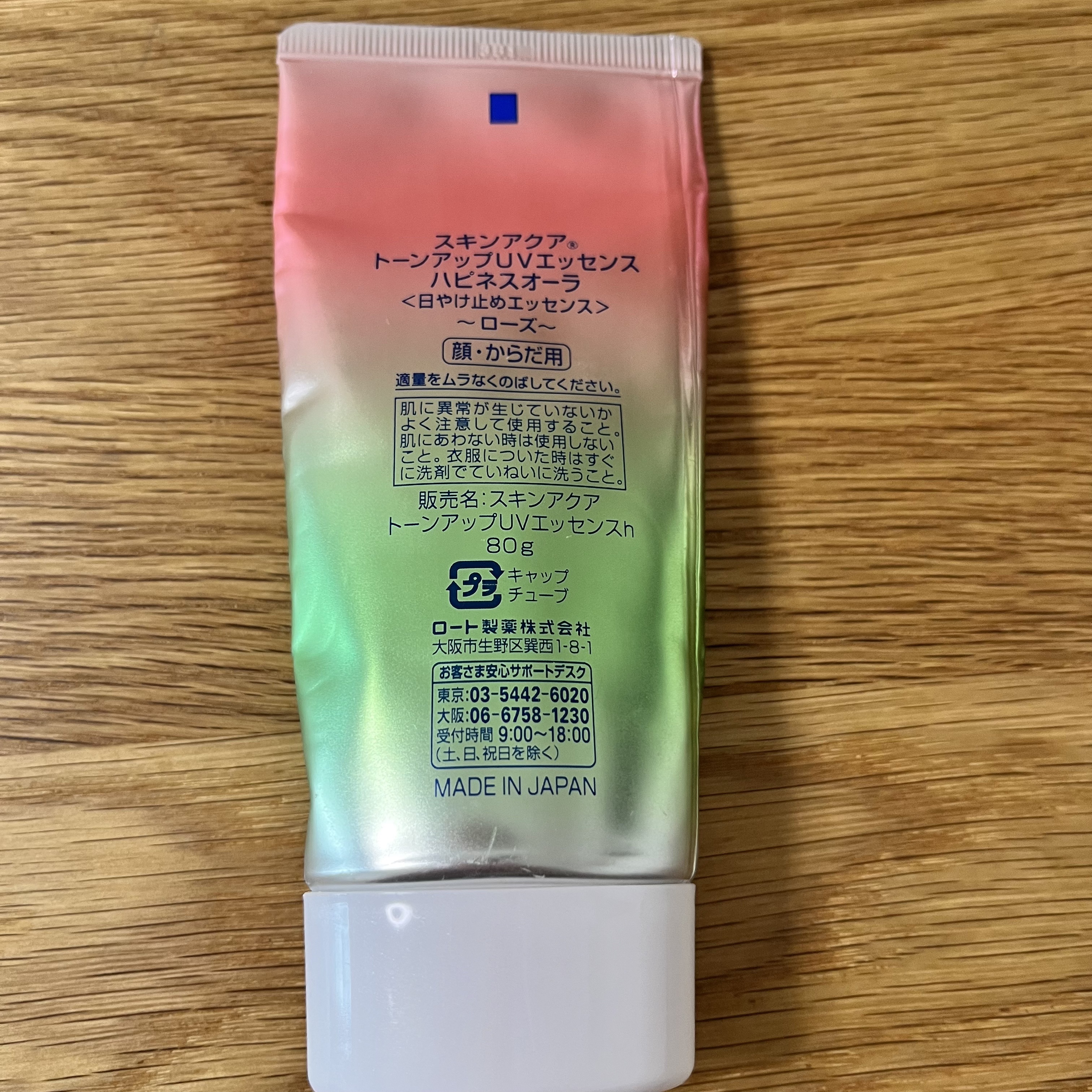 スキンアクアトーンアップUVエッセンスローズローズ初めて使いました!ラベンダーとグリーンは使ったことがあって、日焼け止めや化粧下地はラベンダーを買うことが多いけど、ローズは自然にトーンアップして顔色が良く見えるので良いなと思いました😍白くなり...