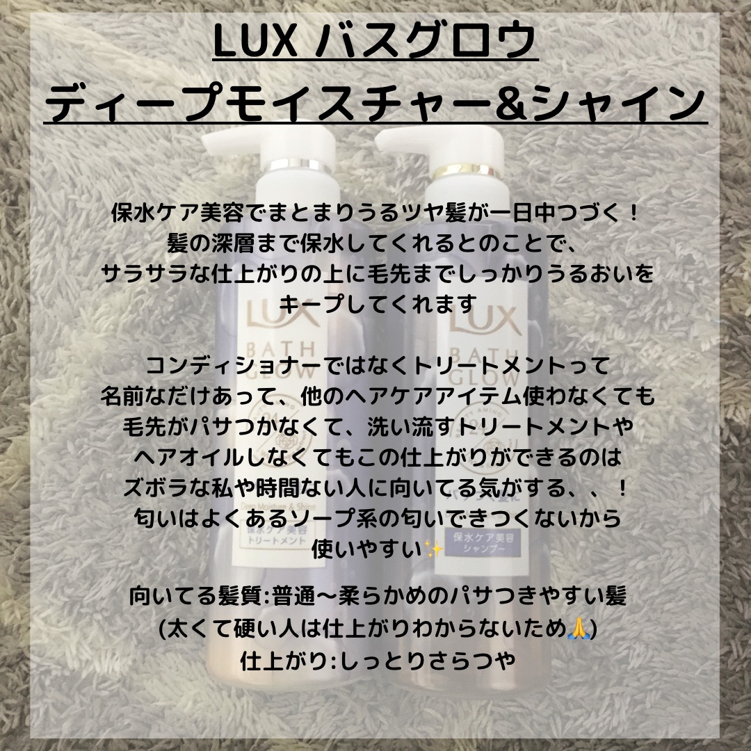 商品詳細情報LUX バスグロウ ディープモイスチャー&シャイン シャンプー/トリートメント