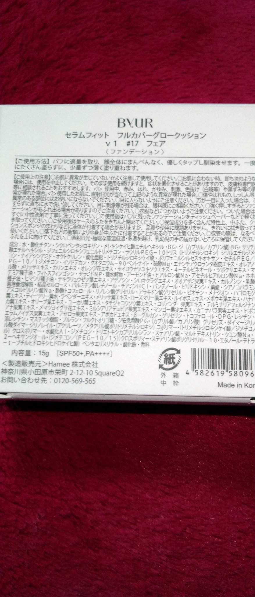 - <17 フェア> 水、酸化チタン、シクロペンタシロキサン、メトキシケイヒ酸エチルヘキシル、BG、ジ(カプリル/カプリン酸)BG、サリチル酸エチルヘキシル、ジフェニルシロキシフェニルトリメチコン、ラウリルPEG-10トリス(トリメチルシロキシ)シリルエチルジメチコン、ナイアシンアミド、オクトクリレン、酸化亜鉛、トリメチルシロキシケイ酸、ポリフェニルシルセスキオキサン、セチルPEG/PPG-10/1ジメチコン、イソドデカン、クオタニウム-90ベントナイト、硫酸Mg、エナンチアクロランタ樹皮エキス、オレアノール酸、メリッサエキス、カリンエキス、オレンジ花エキス、セイヨウナツユキソウエキス、4-テルピネオール、ツボクサエキス、マカデミア種子油、フィトスフィンゴシン、セラミドNP、糖水解物、アーモンド油、ヒアルロン酸Na、アセチルヒアルロン酸Na、ホホバ種子油、ヒマワリ種子油、テキラリュウゼツ葉エキス、アデノシン、シロキクラゲエキス、オオアザミ果実エキス、カルノシン、乳酸桿菌培養溶解質、結晶セルロース、パルミチン酸レチノール、チアミンHCl、パンテノール、ピリドキシン、葉酸、シアノコバラミン、アスコルビルリン酸Na、酢酸トコフェロール、リノレン酸グリセリル、アラキドン酸グリセリル、ビオチン、メナジオン、ハゴロモグサ葉エキス、ティーツリー葉水、ラベンダーエキス、メリッサ葉エキス、ローズマリー葉エキス、ルイボスエキス、メボウキ葉エキス、ハナハッカ葉エキス、オリーブ葉エキス、ユーカリ葉エキス、タチジャコウソウ葉エキス、コリアンダー果実エキス、テルミナリアフェルジナンジアナ果実エキス、メマツヨイグサ花エキス、ミルシアリアデュビア果実エキス、マンゴー果実エキス、カニナバラ果実エキス、ヒポファエラムノイデス果実エキス、アセロラ果実エキス、アボカドエキス、β-グルカン、グリセリン、トコフェロール、DPG、レシチン、水添レシチン、マスチック樹脂、プルラン、フルクトオリゴ糖、ジ安息香酸PG、(カプリル酸/カプリン酸)グリセリズ、ダイマージリノール酸ダイマージリノレイル、(アクリレーツ/メタクリル酸ポリトリメチルシロキシ)コポリマー、(トリメチルシロキシケイ酸/ジメチコノール)クロスポリマー、水酸化Al、ジメチコン、トリエトキシカプリリルシラン、ステアリン酸、マルトデキストリン、クエン酸Na、1,2-ヘキサンジオール、(ジメチコン/(PEG-10/15))クロスポリマー、ステアリン酸ポリグリセリル-10、エタノール、テトラ(ジ-t-ブチルヒドロキシヒドロケイヒ酸)ペンタエリスリチル、酸化鉄、香料 <21 ナチュラルベージュ> 水、酸化チタン、シクロペンタシロキサン、メトキシケイヒ酸エチルヘキシル、BG、ジ(カプリル/カプリン酸)BG、サリチル酸エチルヘキシル、ジフェニルシロキシフェニルトリメチコン、ラウリルPEG-10トリス(トリメチルシロキシ)シリルエチルジメチコン、ナイアシンアミド、オクトクリレン、酸化亜鉛、トリメチルシロキシケイ酸、ポリフェニルシルセスキオキサン、セチルPEG/PPG-10/1ジメチコン、イソドデカン、クオタニウム-90ベントナイト、酸化鉄、硫酸Mg、エナンチアクロランタ樹皮エキス、オレアノール酸、メリッサエキス、カリンエキス、オレンジ花エキス、セイヨウナツユキソウエキス、4-テルピネオール、ツボクサエキス、マカデミア種子油、フィトスフィンゴシン、セラミドNP、糖水解物、アーモンド油、ヒアルロン酸Na、アセチルヒアルロン酸Na、ホホバ種子油、ヒマワリ種子油、テキラリュウゼツ葉エキス、アデノシン、シロキクラゲエキス、オオアザミ果実エキス、カルノシン、乳酸桿菌培養溶解質、結晶セルロース、パルミチン酸レチノール、チアミンHCl、パンテノール、ピリドキシン、葉酸、シアノコバラミン、アスコルビルリン酸Na、酢酸トコフェロール、リノレン酸グリセリル、アラキドン酸グリセリル、ビオチン、メナジオン、ハゴロモグサ葉エキス、ティーツリー葉水、ラベンダーエキス、メリッサ葉エキス、ローズマリー葉エキス、ルイボスエキス、メボウキ葉エキス、ハナハッカ葉エキス、オリーブ葉エキス、ユーカリ葉エキス、タチジャコウソウ葉エキス、コリアンダー果実エキス、テルミナリアフェルジナンジアナ果実エキス、メマツヨイグサ花エキス、ミルシアリアデュビア果実エキス、マンゴー果実エキス、カニナバラ果実エキス、ヒポファエラムノイデス果実エキス、アセロラ果実エキス、アボカドエキス、β-グルカン、グリセリン、トコフェロール、DPG、レシチン、水添レシチン、マスチック樹脂、プルラン、フルクトオリゴ糖、ジ安息香酸PG、(カプリル酸/カプリン酸)グリセリズ、ダイマージリノール酸ダイマージリノレイル、(アクリレーツ/メタクリル酸ポリトリメチルシロキシ)コポリマー、(トリメチルシロキシケイ酸/ジメチコノール)クロスポリマー、水酸化Al、ジメチコン、トリエトキシカプリリルシラン、ステアリン酸、マルトデキストリン、クエン酸Na