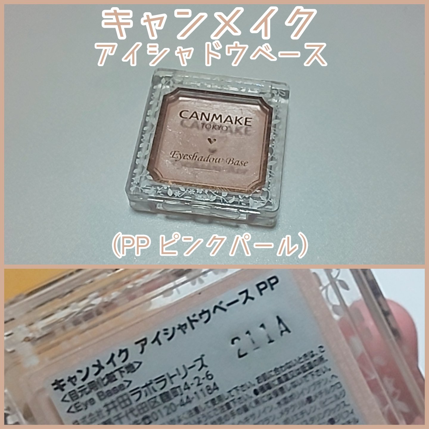 こちらはキャンメイクさんのアイシャドウベースでカラーはPPピンクパールです目元を自然に明るくしたいのとクリーミータイプっぽかったので保湿も出来るかな?との思いから購入してみましたイメージ通りクリーミーなタイプだったのでベタつきも少なく保湿もさ...