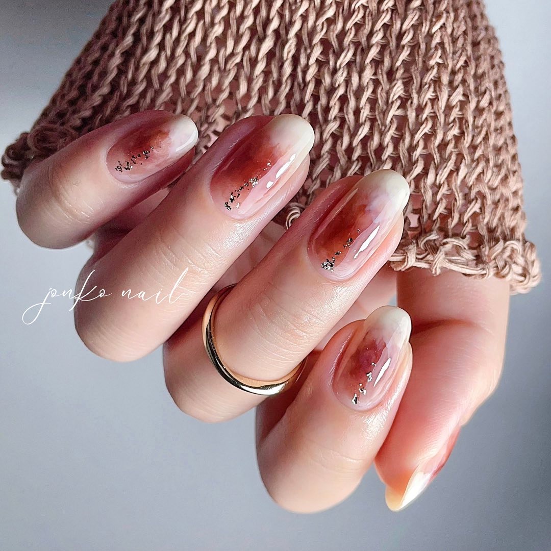 フローズンベリー↓箔とグリッターを置く↓フローズンベリーのごくごくシンプルな工程です🙆♀️ 濃淡も付けてないんだけど付けたかのように凝ってる風に見える(笑) なんと言ってもカラーが可愛い☺️赤!ではなくラズベリー!なところがいい♡