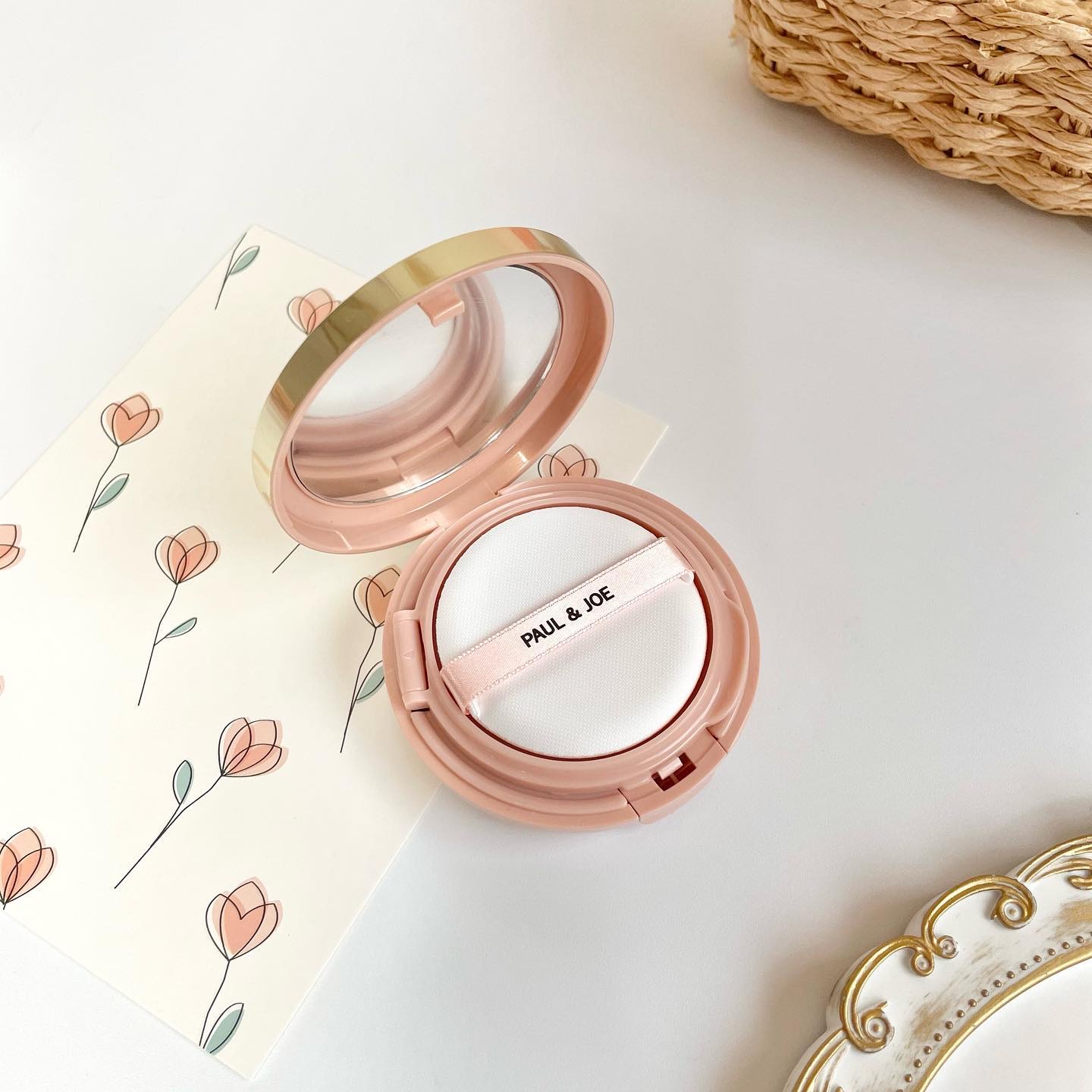 - うるおいツヤめく“美素肌フィクサー”。 美容液成分約90%、 オールインワン・クッションコンパクト。 ・化粧下地・ファンデーション・スキンケア効果を兼ね備えた、ポール & ジョー初のオールインワン・クッションコンパクト。つくりこまず素肌を活かす絶妙な補整効果で、抜け感のある美素肌に仕上げます。テクニックレスでどなたでも簡単に美しく仕上げることができます。 ・ぼかしフィルター(スクレジェル)*¹ の効果で毛穴、肌の凹凸、くすみ、色ムラをふんわりとぼかしてなめらかに整えます。素肌を活かした抜け感のある旬なツヤ肌に。 ・モイスチュアエッセンス*² やモイスチュアオイル*³、3種のヒアルロン酸*⁴ など美容液成分を約90%以上配合することで、うるおいを逃がさずキープ。みずみずしい使用感で、ポール & ジョーのベースメイクの中でも最高レベルのリッチなうるおい感に。 ・うるおいを抱え込んだ柔軟なジェル膜が肌と一体化するように心地よく密着し、崩れにくい肌をキープ。シワにも入りにくく、乾燥によるくずれを防ぎます。膜同士がなじみやすいので、気になる部分の重ねづけや日中のお直しも美しく仕上がります。 *¹ カルボマーNa *² シロキクラゲエキス *³ ジカプリン酸PG *⁴ アセチルヒアルロン酸(アセチルヒアルロン酸Na)、加水分解ヒアルロン酸、ヒアルロン酸(ヒアルロン酸Na) (全て保湿)