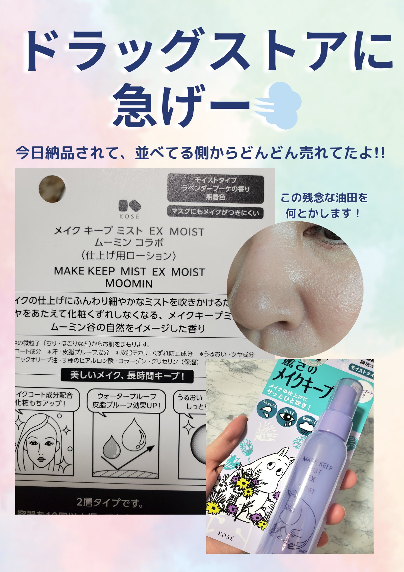 本日の#コスメ購入品#コーセーメイクキープミストEX#koseメイクキープミスト#メイクキープミストex限定ムーミンコラボ森林浴の香後確かラベンダーの香りのムーミンコラボもありましたよ♪リピート買いして大体限定の香りを買ってますが、オリジナル...