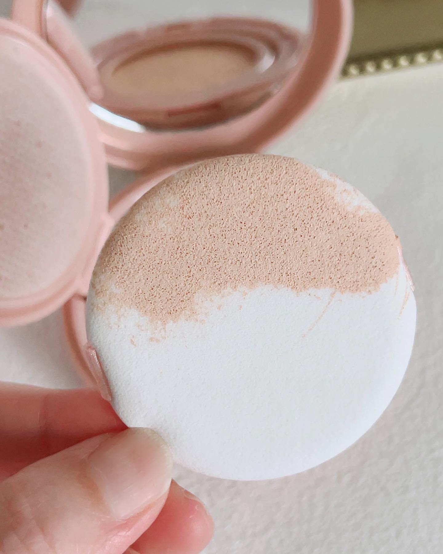 保湿力が旧品よりアップしたという美容液プライマー。4色もあるのは嬉しい。どれかヒットするはず。 スルスルなめらかに塗れる、みずみずしいテクスチャー。00はザ・ピンクの下地。内側から発光するような明るさ。 香りはシースルー ヴェール コンパクトと同じ素敵な香りがしました。このクッションファンデ、薄づきなんですが仕上がりがすごくいい感じなのですよ。