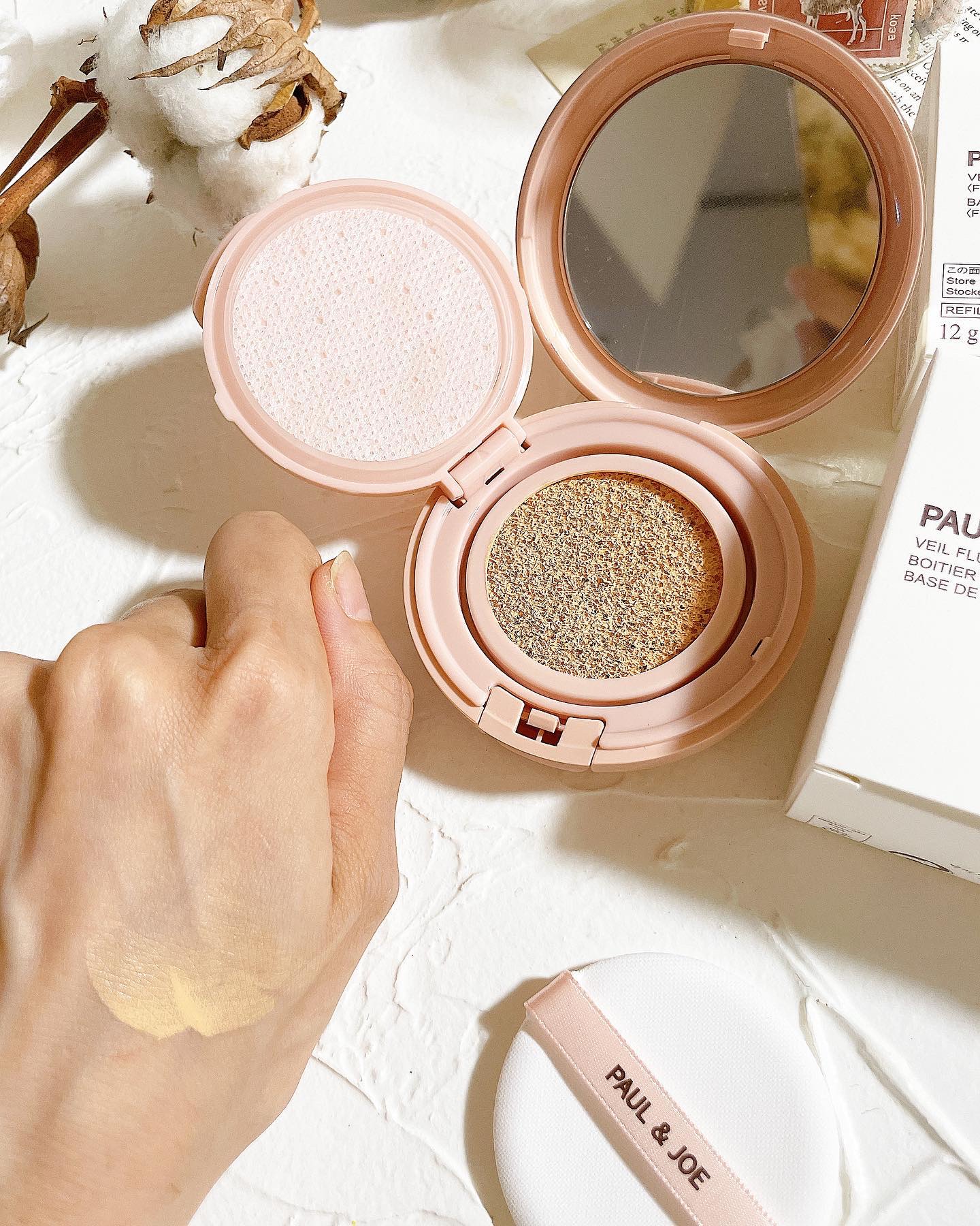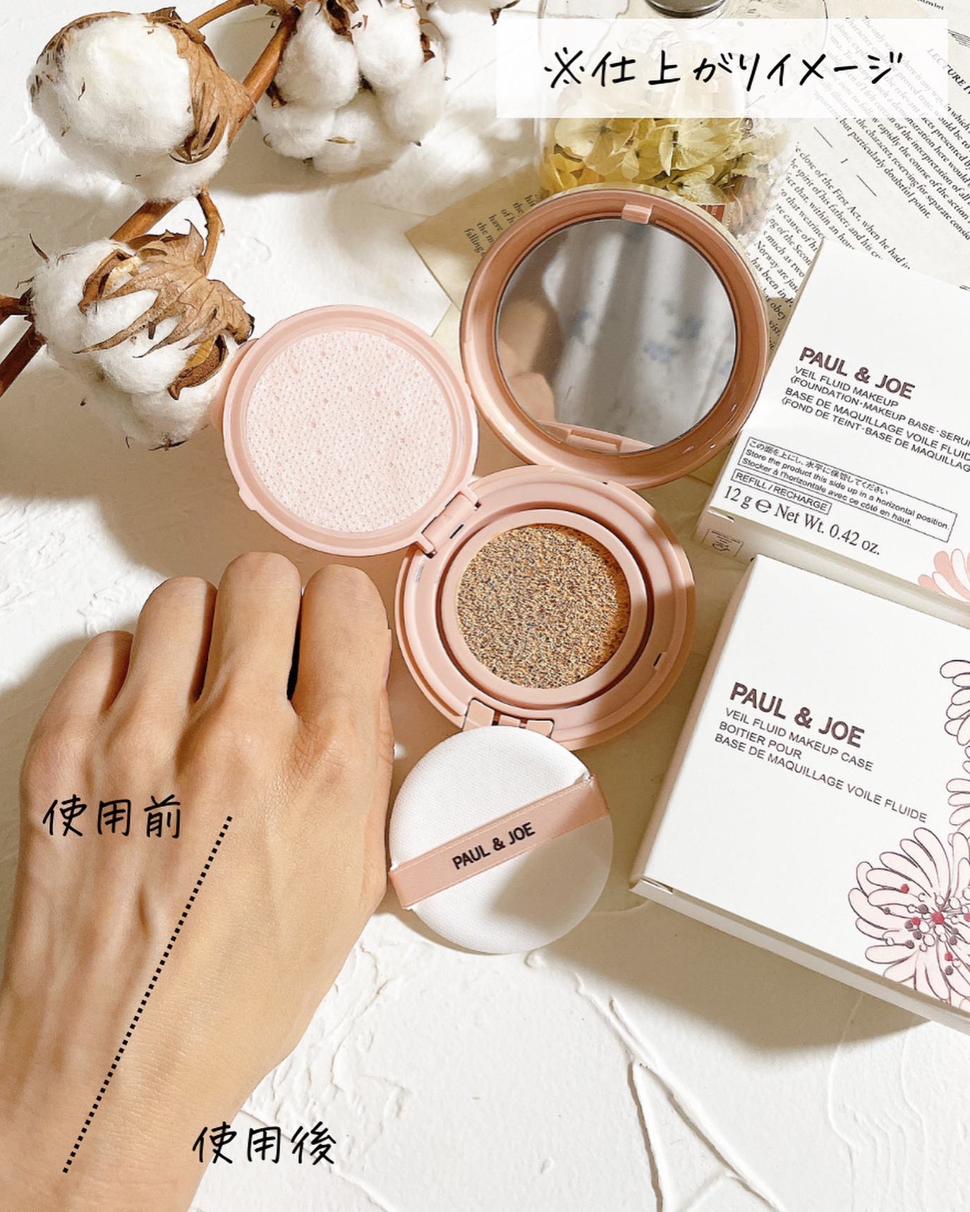保湿力が旧品よりアップしたという美容液プライマー。4色もあるのは嬉しい。どれかヒットするはず。 スルスルなめらかに塗れる、みずみずしいテクスチャー。00はザ・ピンクの下地。内側から発光するような明るさ。 香りはシースルー ヴェール コンパクトと同じ素敵な香りがしました。このクッションファンデ、薄づきなんですが仕上がりがすごくいい感じなのですよ。