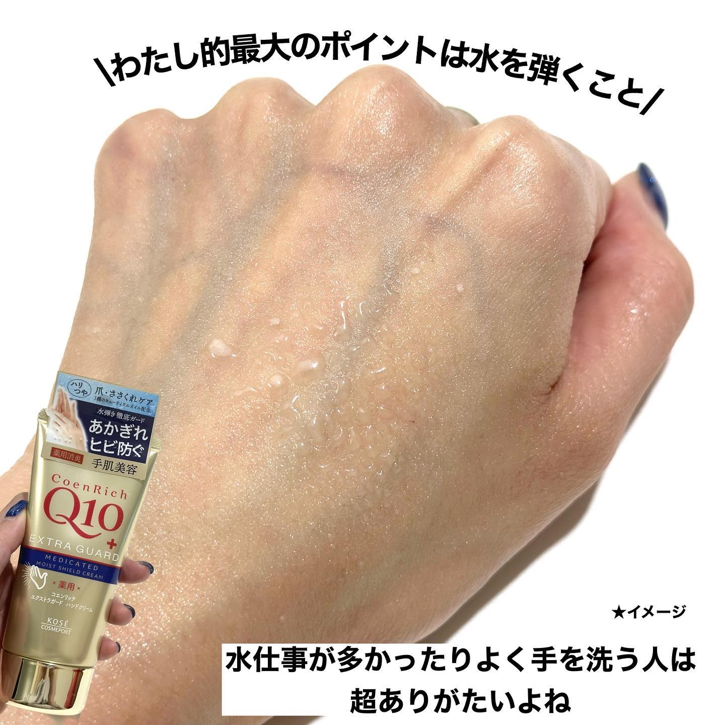 CoenRich(コエンリッチ)Q10薬用エクストラガードハンドクリーム4つのアプローチで手肌年齢対策!指先まで若々しい印象に✨→①ハリ・ツヤ・うるおい ②ヒビ・あかぎれケア ③撥水ガード ④ベタつかない手肌の乾燥による小じわを目立たなくする...
